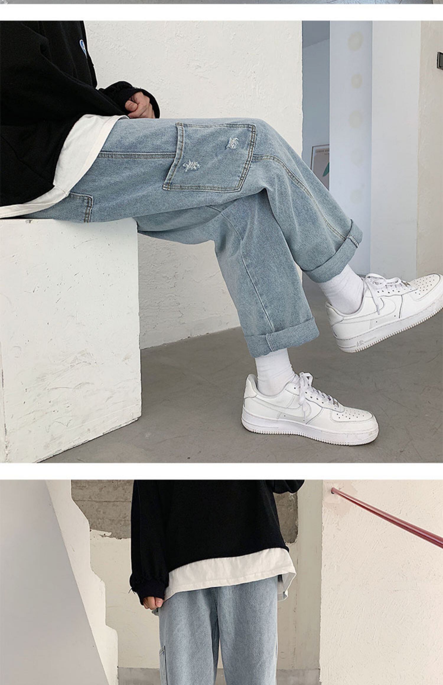 ジーンズ ルーズスタイルカジュアルクロップド レッド かわいい 7/14 mi2071126336531