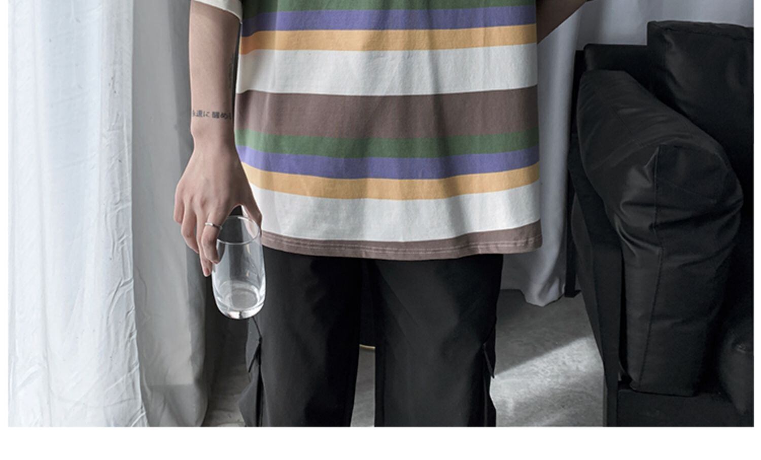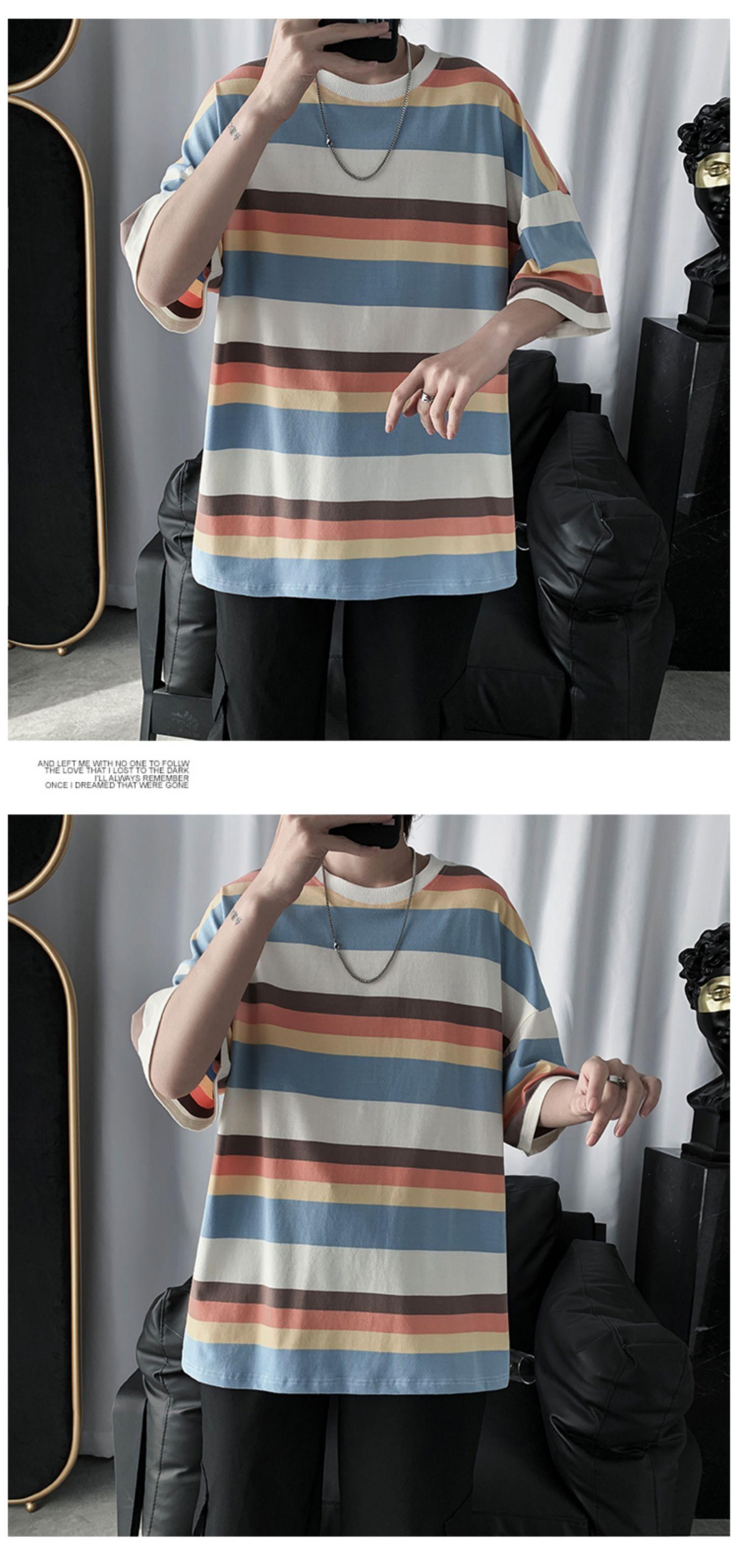ストライプスリーブTシャツ スタイルルーズ 7/14 mi2066649755082
