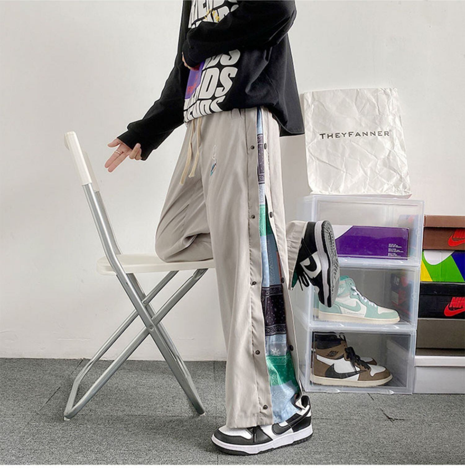 Flowerデザイン ブレストパンツ ルーズスキニーカジュアル ストリート フラワーデザイン ステッチ 7/14 mi2089007216122