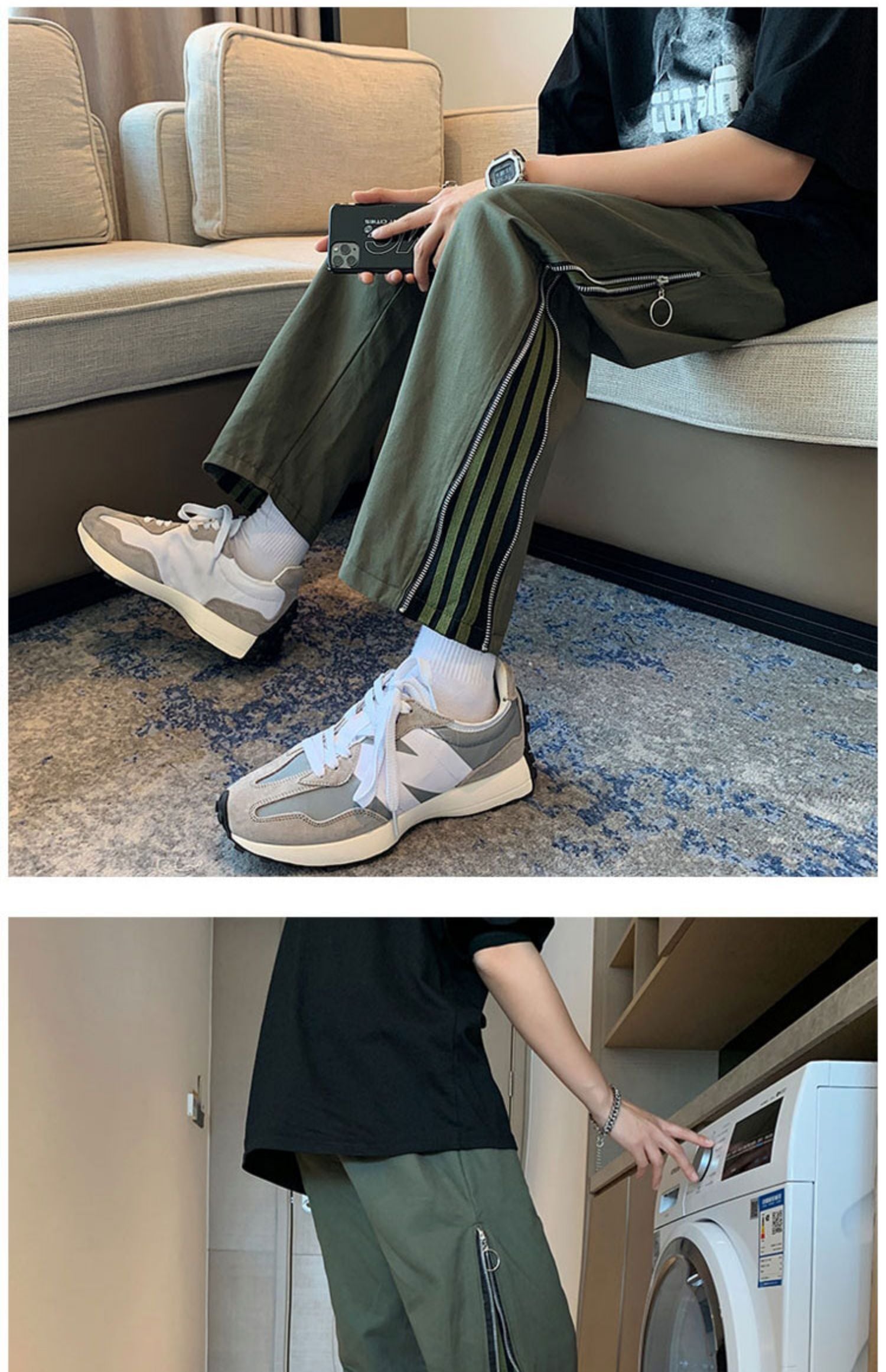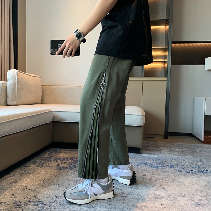 サイドジッパーストライプパンツ ルーズカジュアル ステッチ 7/14 mi2064901039968