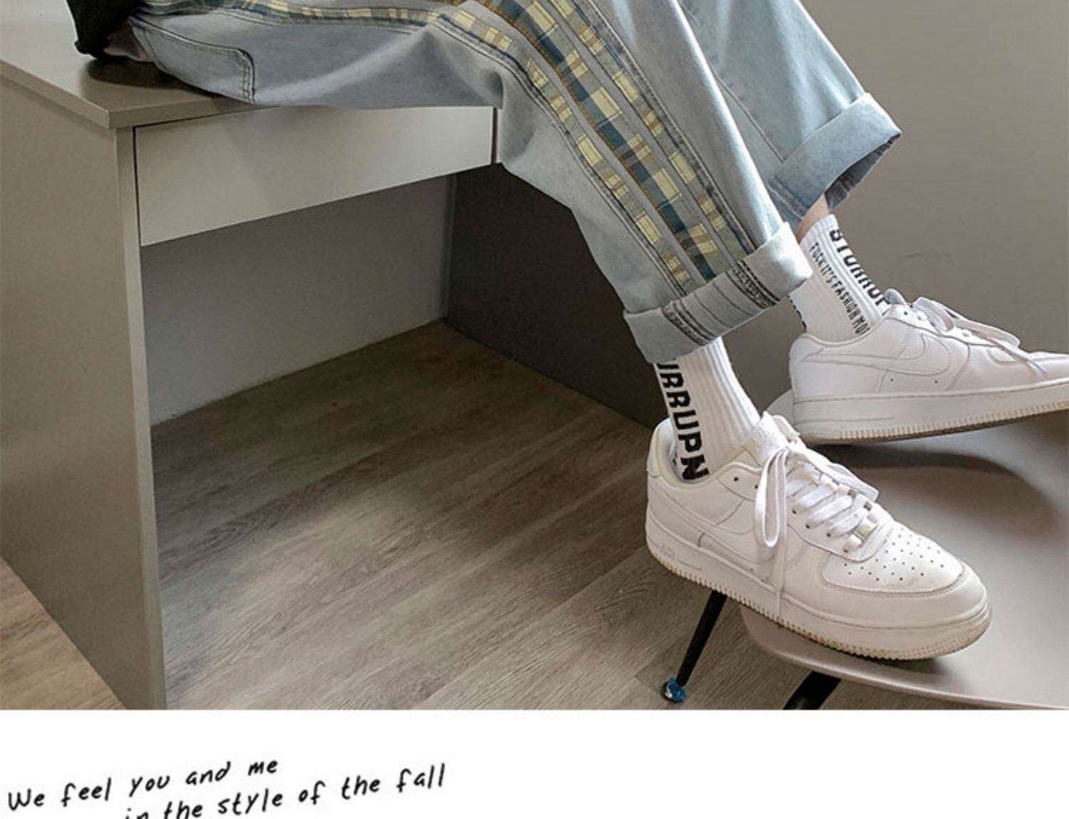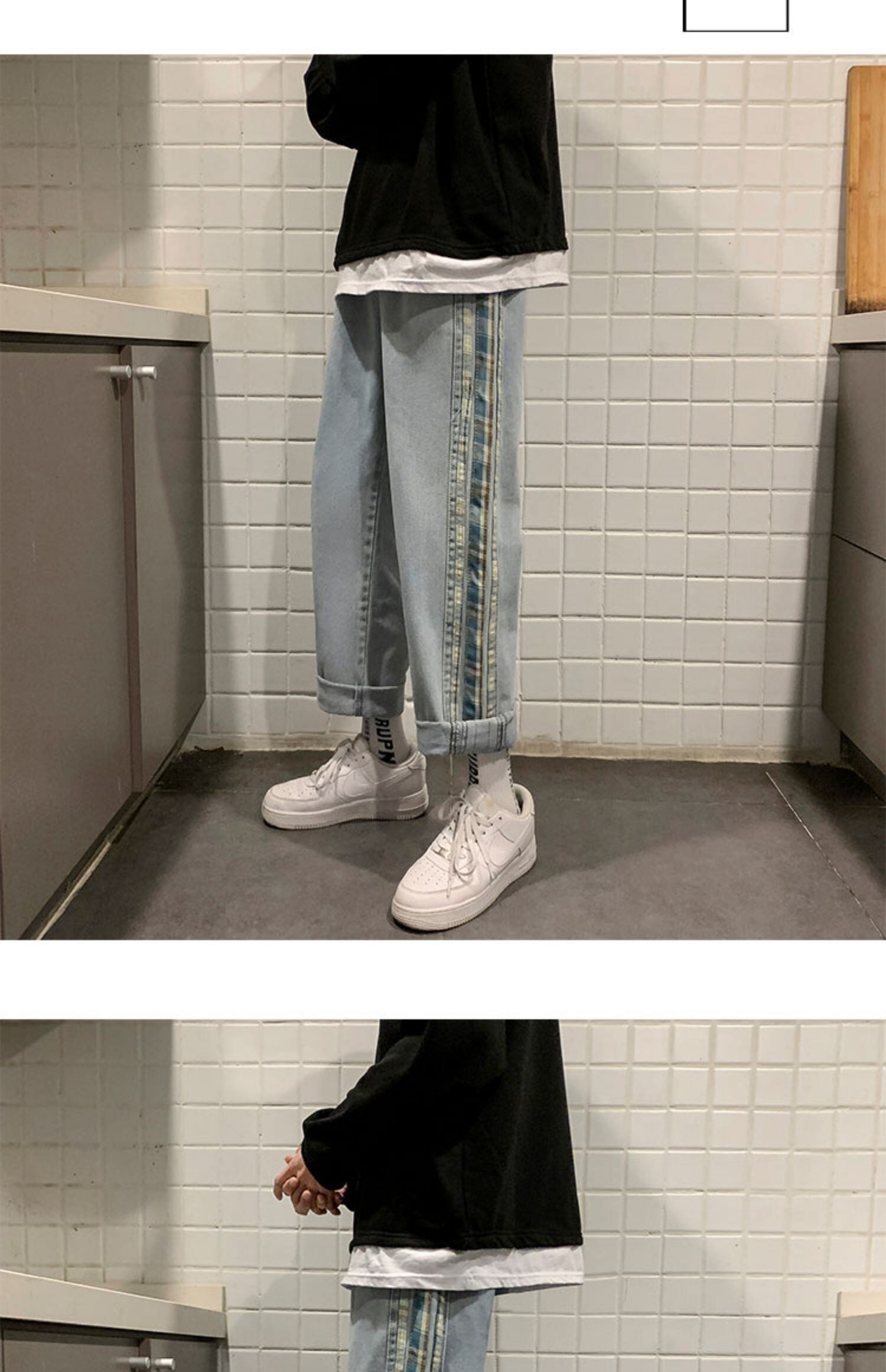 ジーンズ スプリングオータムルーズスタンダードストライプカジュアルパンツ レトロ 春物 秋物 7/14 mi2018227047119