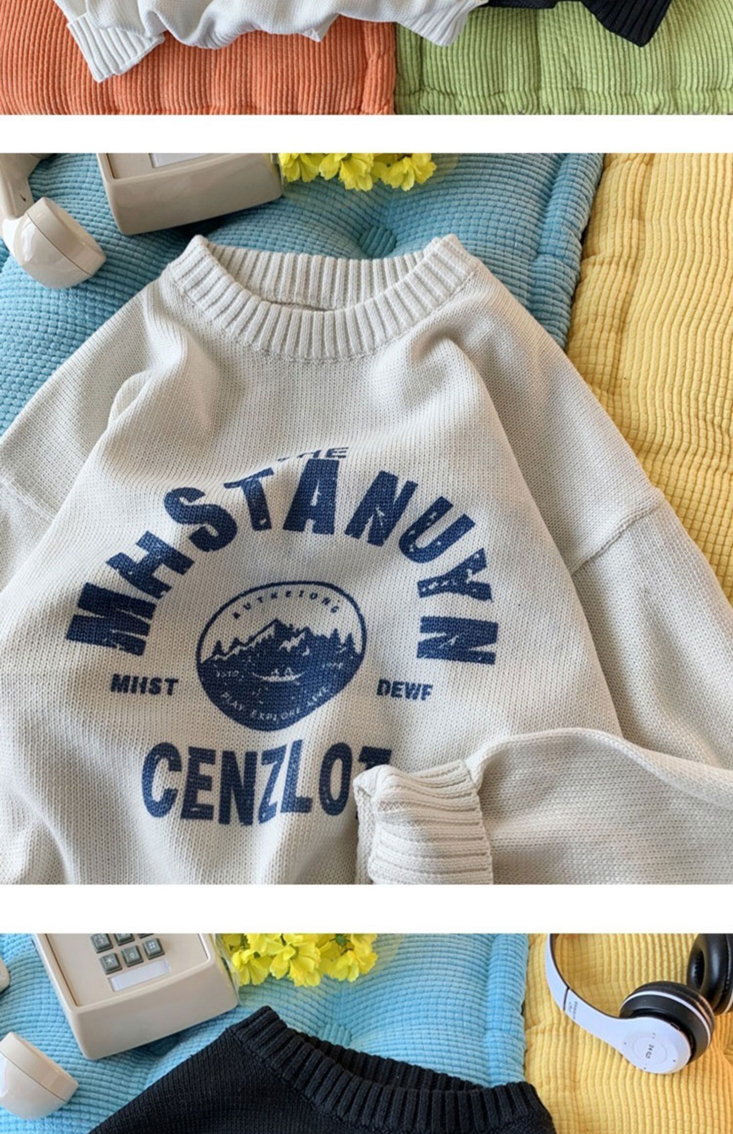 プリントセーター オータムウィンタールーズニットカジュアルシャツ 秋物 冬物 7/14 mi2010091063162