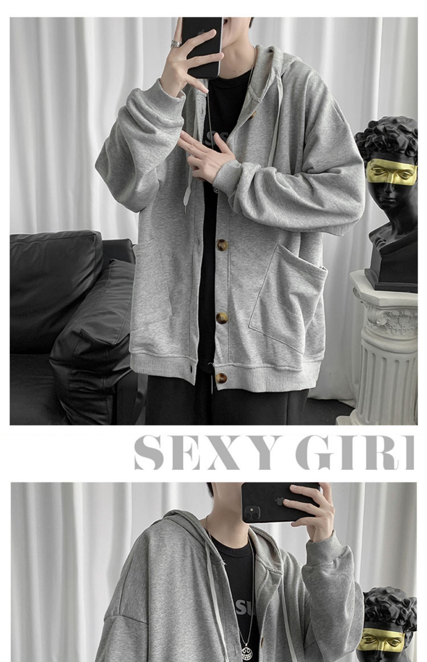 グレーカーディガンセーター レッドルーズカジュアルフードジャケット ストリート 7/14 mi202265110363