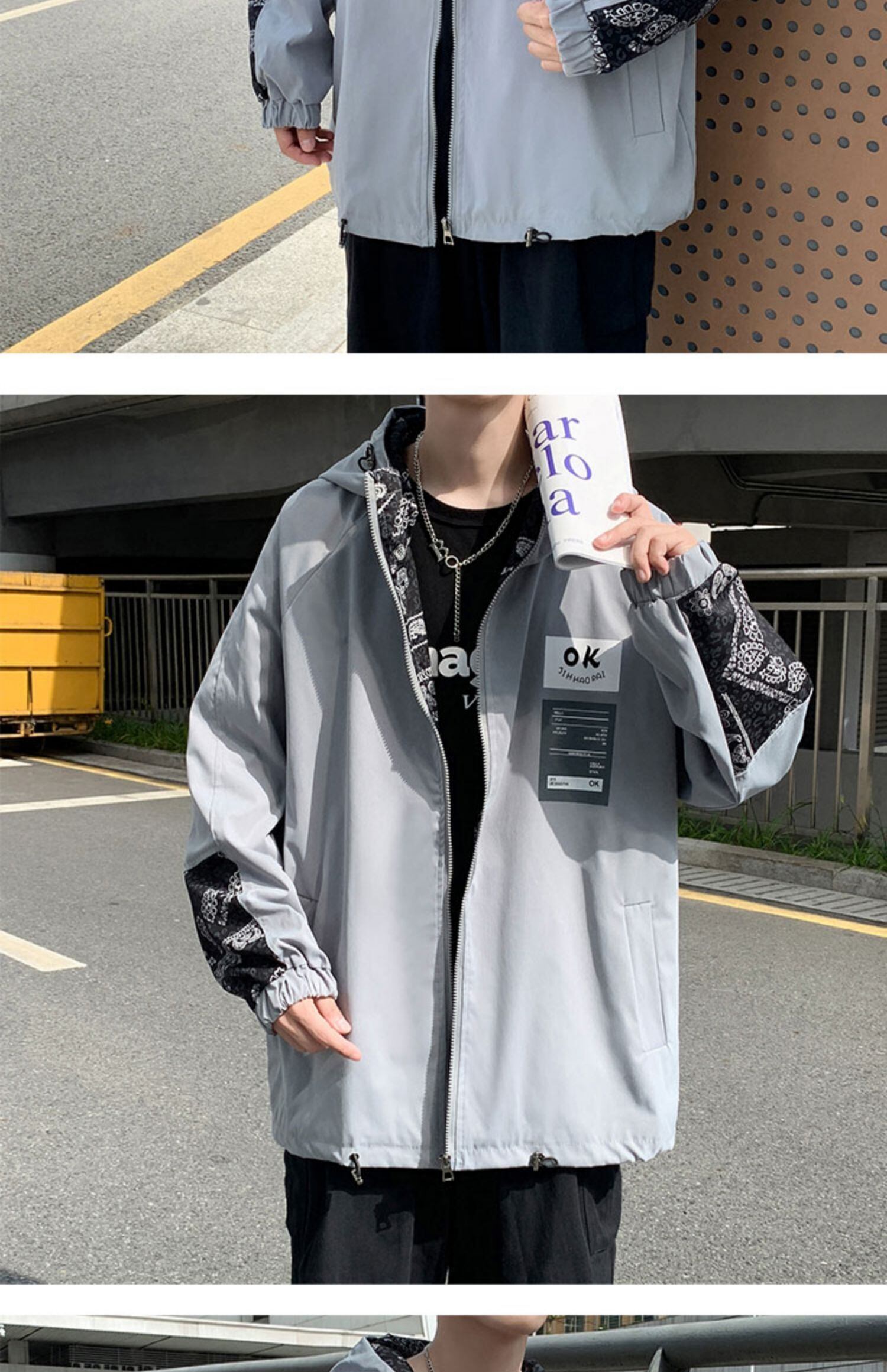 Flowerデザイン ジャケット ルーズフードオーバーオール ストリート フラワーデザイン ステッチ 7/14 mi2066477220192