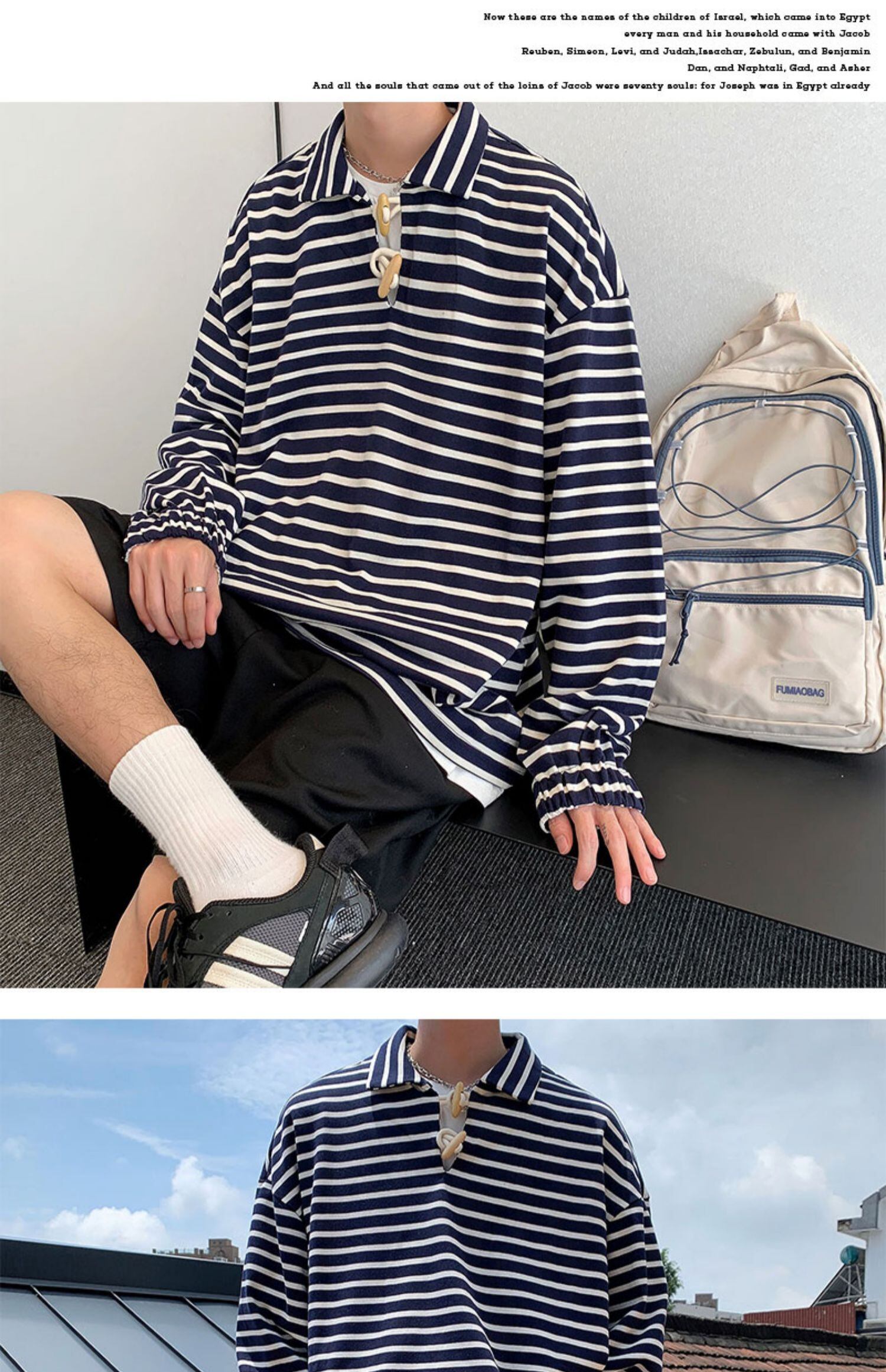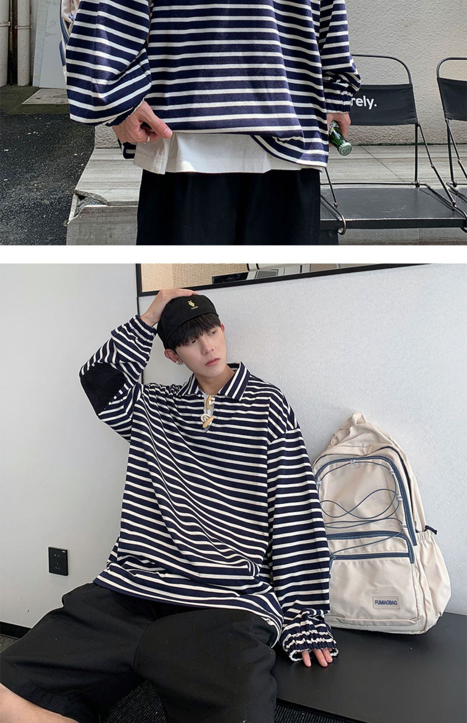 レッドストライプセーター スタイルルーズカジュアルカラーTシャツ ロング 7/14 mi2095206890572
