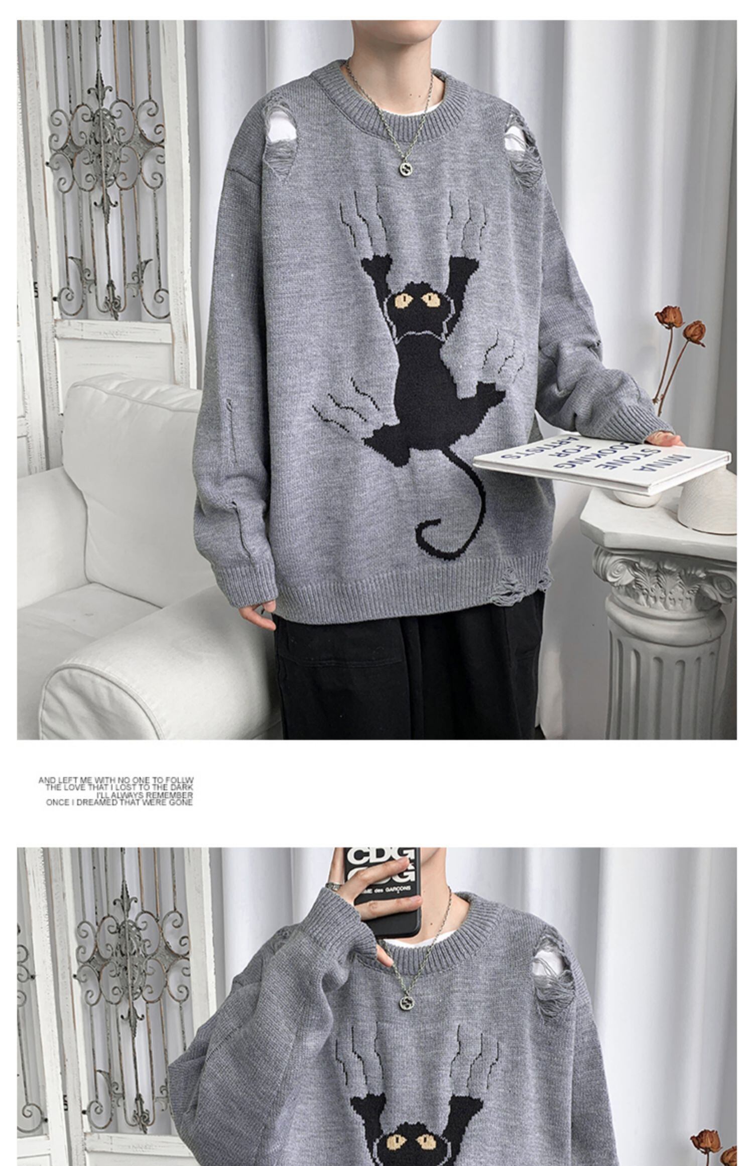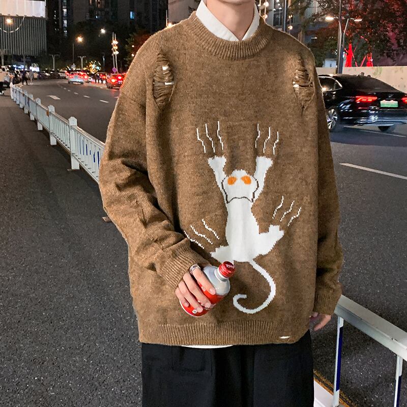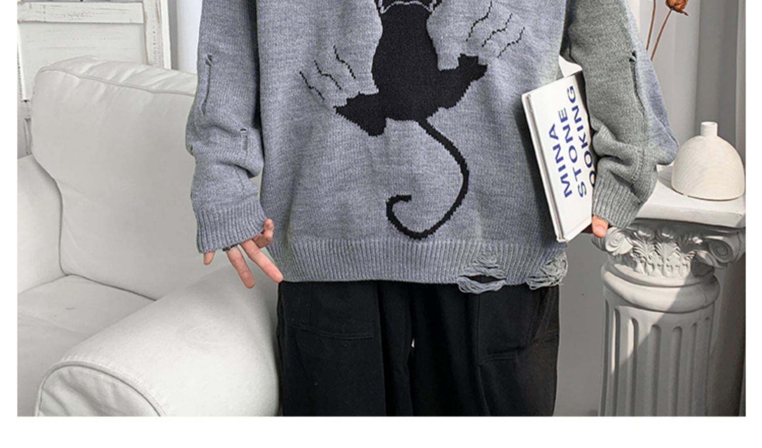オータムウィンターセーター ルーズラウンドネックプリント柄 秋物 冬物 Oネック 7/14 mi2043774504992
