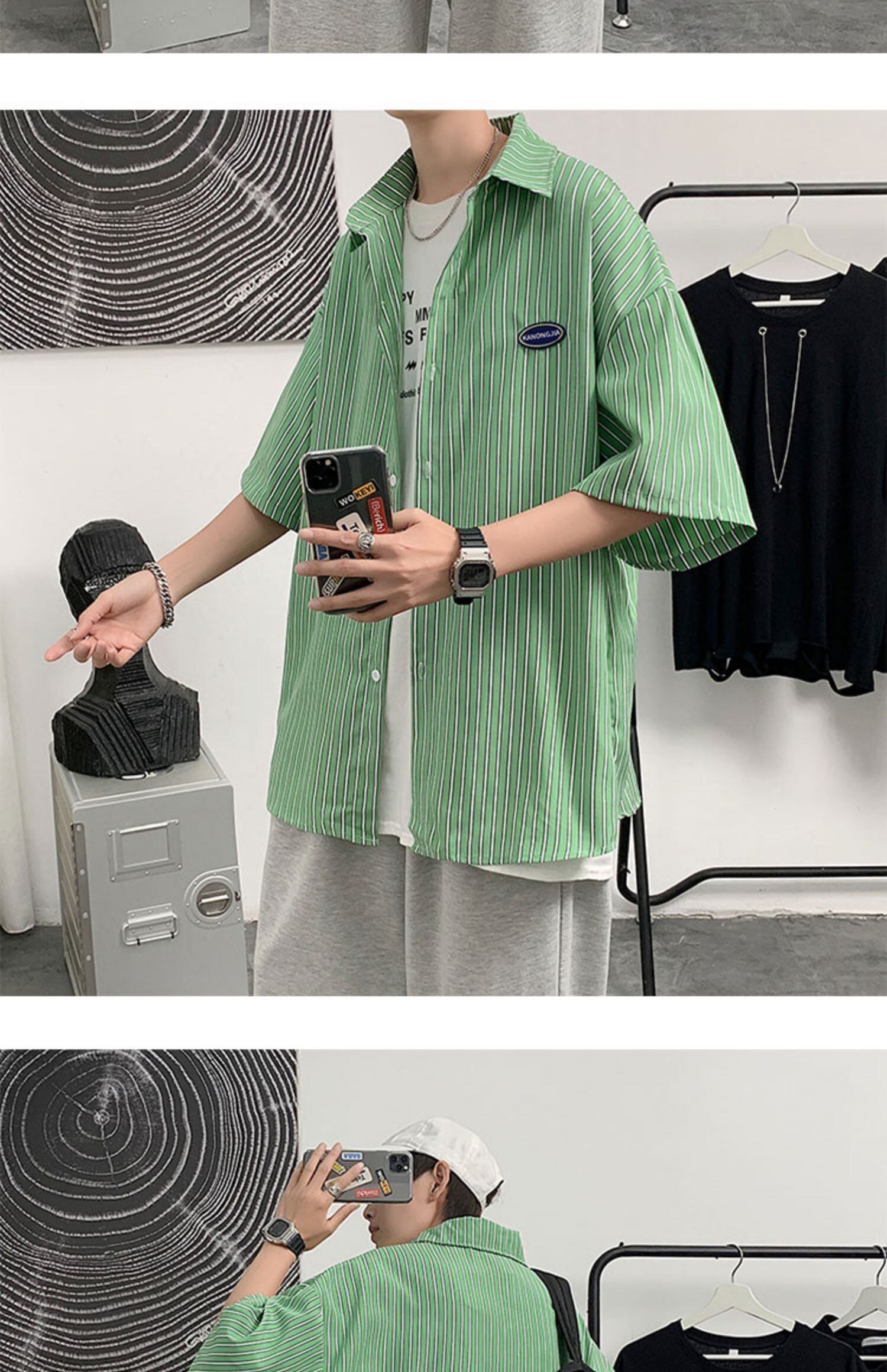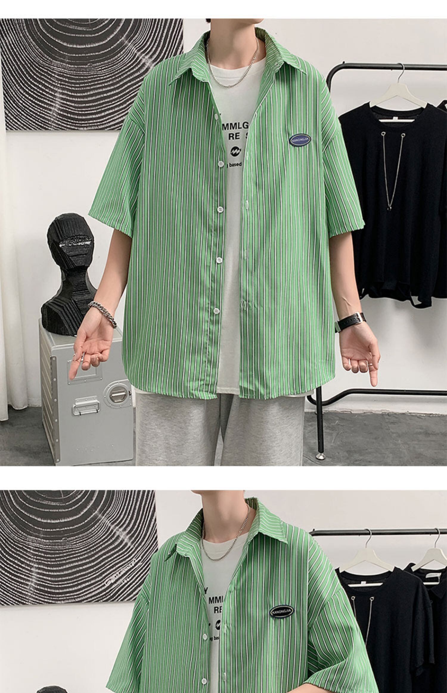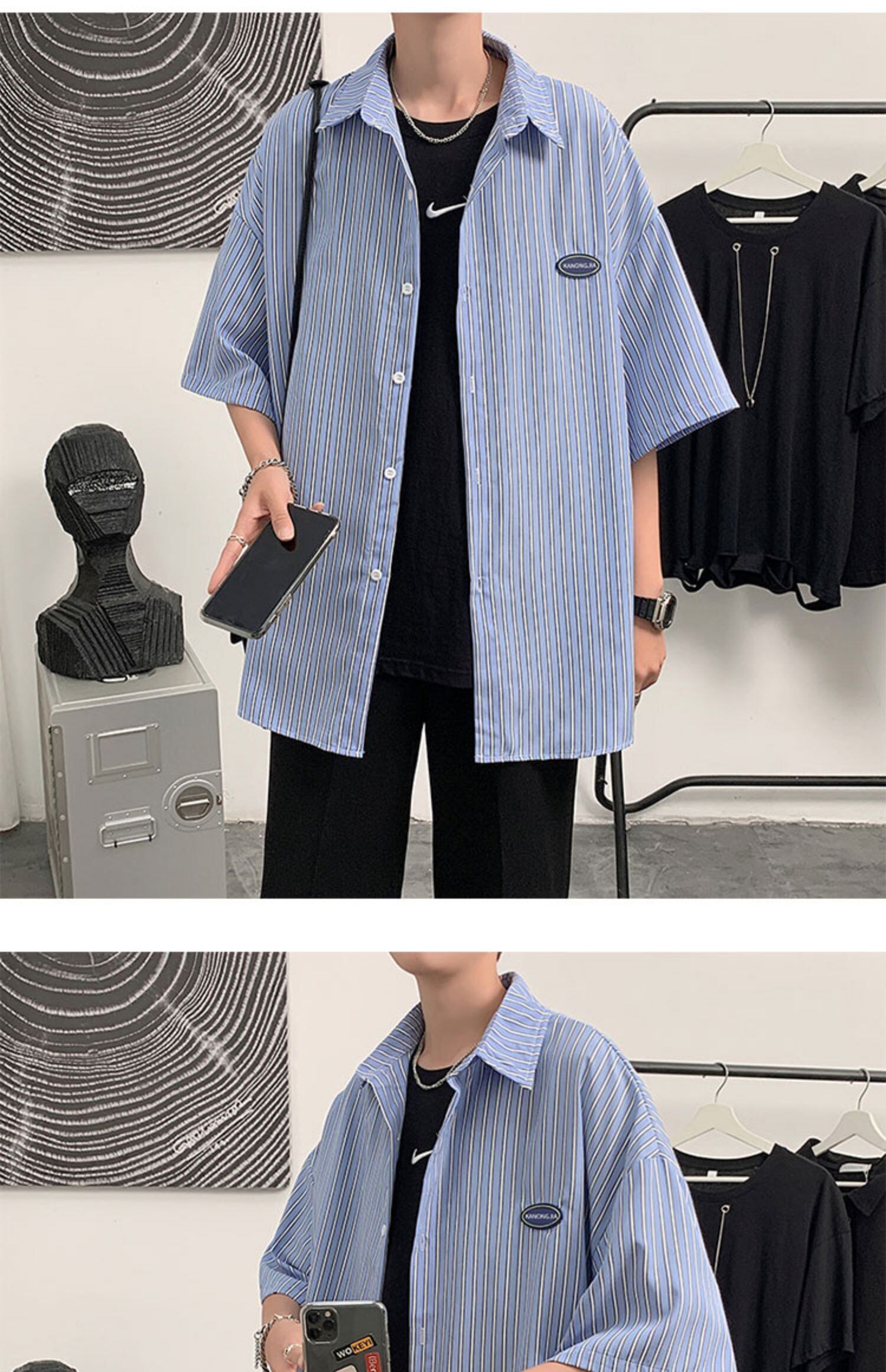 ブルーストライプシャツ スタイルルーズカジュアルジャケット 7/14 mi2045998707460