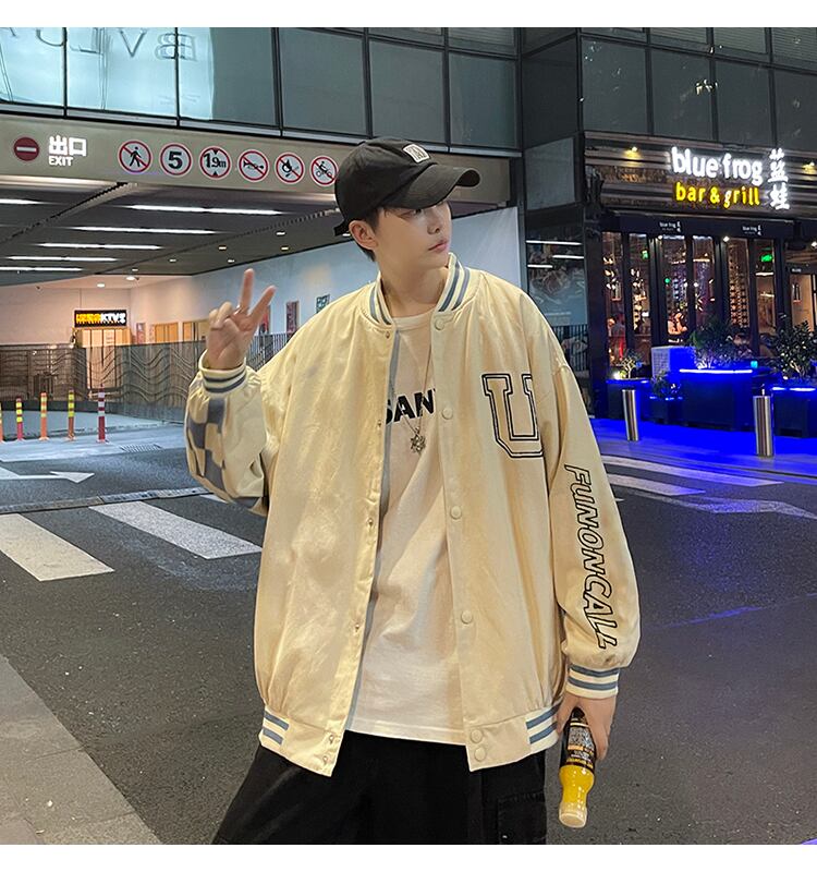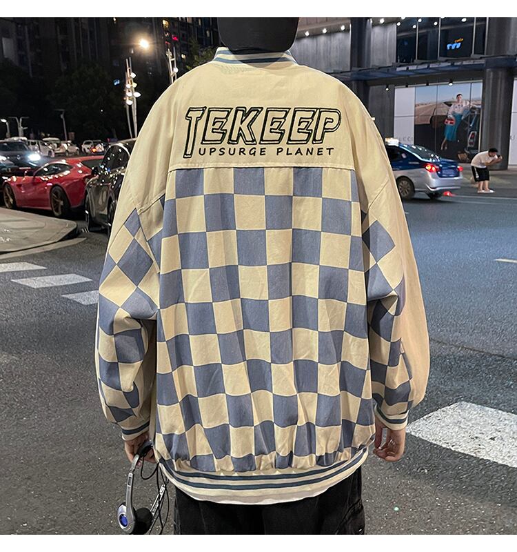 刺繍ジャケット ルーズ格子柄スプリングオータム ストリート 春物 秋物 ステッチ 7/14 mi2012081478531