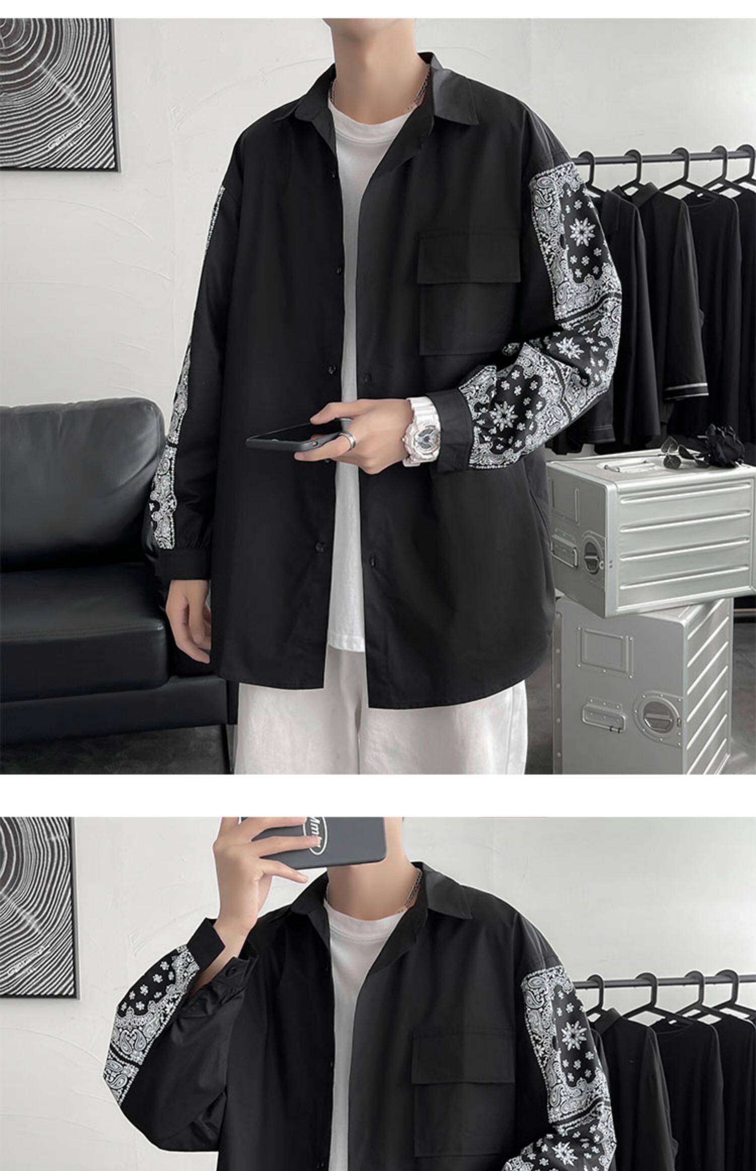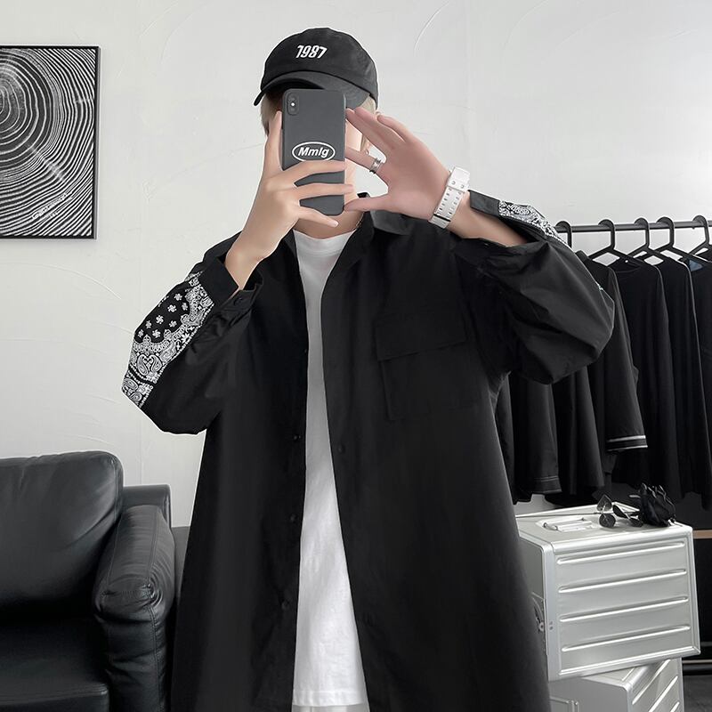シャツ スタイルスタンダードルーズカジュアルジャケット ロング レトロ ステッチ 7/14 mi2049342177134