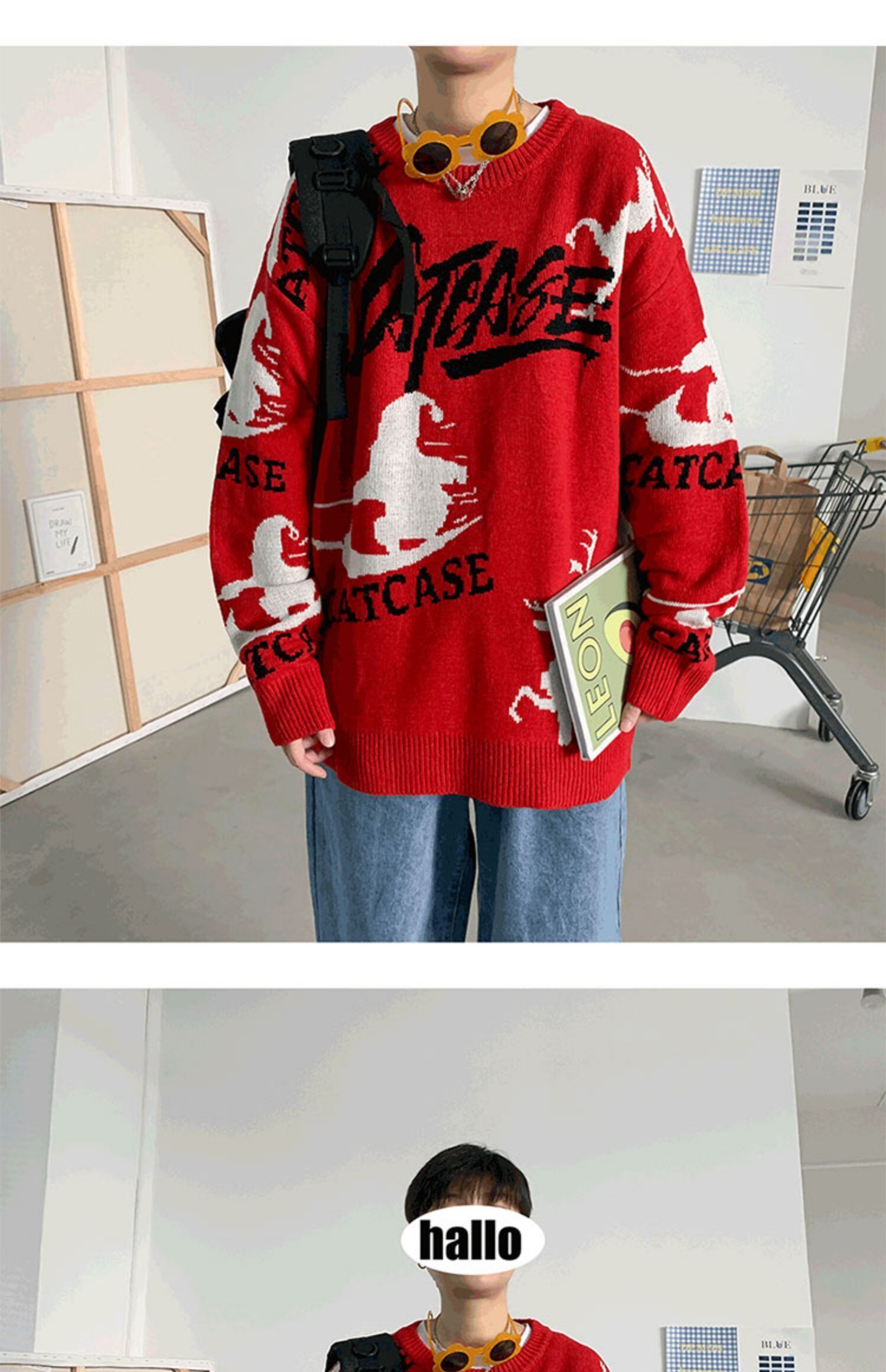 ラウンドネックセーター ルーズスタイルレッド Oネック 7/14 mi2017495870512