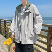 ツーピース ジャケット スプリングオータムスタイルルーズカラーフードトップス 春物 秋物 ステッチ 7/14 mi2028999923723