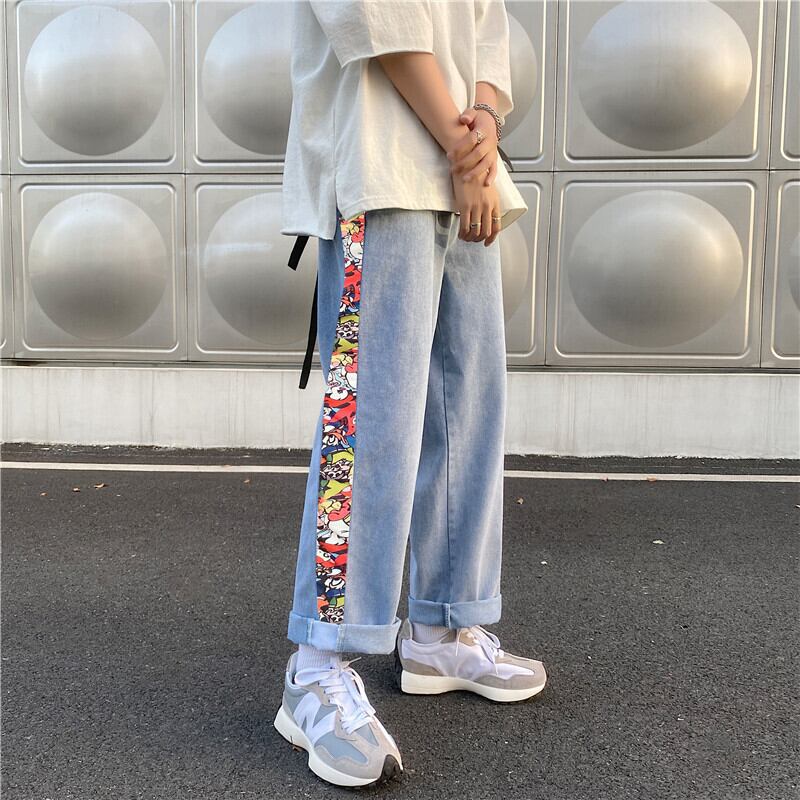 ジーンズ ルーズカジュアルプリントパンツ ストリート ステッチ 7/14 mi2067100717153