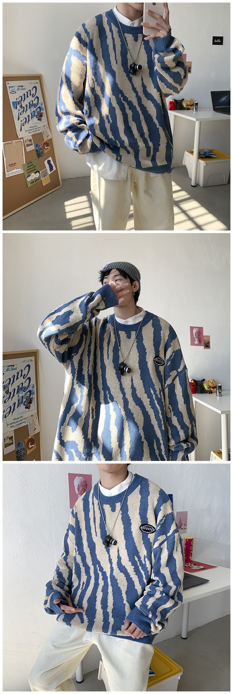 スプリングオータムストライプセーター ルーズニット 春物 秋物 7/14 mi2012085671251