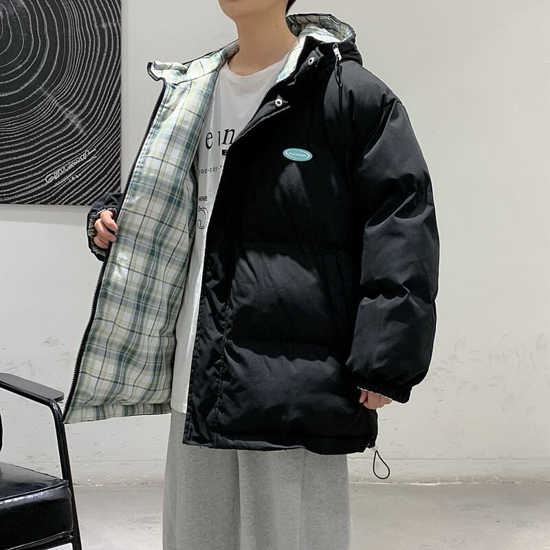 ウィンタージャケット ルーズカジュアルフード格子柄ホワイト コットン ストリート 冬物 7/14 mi2083374059324