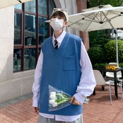 ポケットセーター スタイルルーズソリッド カラーVネック ソリッドカラー 7/14 mi2025261200948