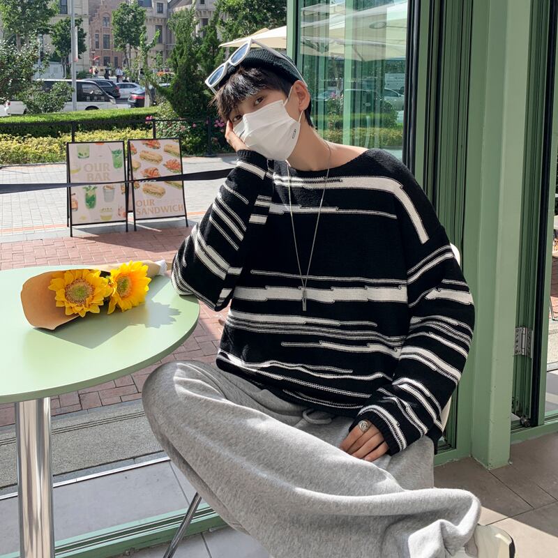 ストライプセーター スタイルルーズシャツ ロング ストリート 7/14 mi2071632603031