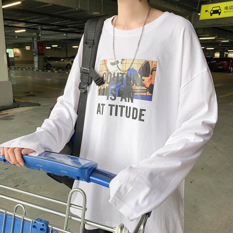 スタイルTシャツ シャツ スプリングオータムルーズカジュアルプリントトップス ロング 春物 秋物 7/14 mi2017579372946