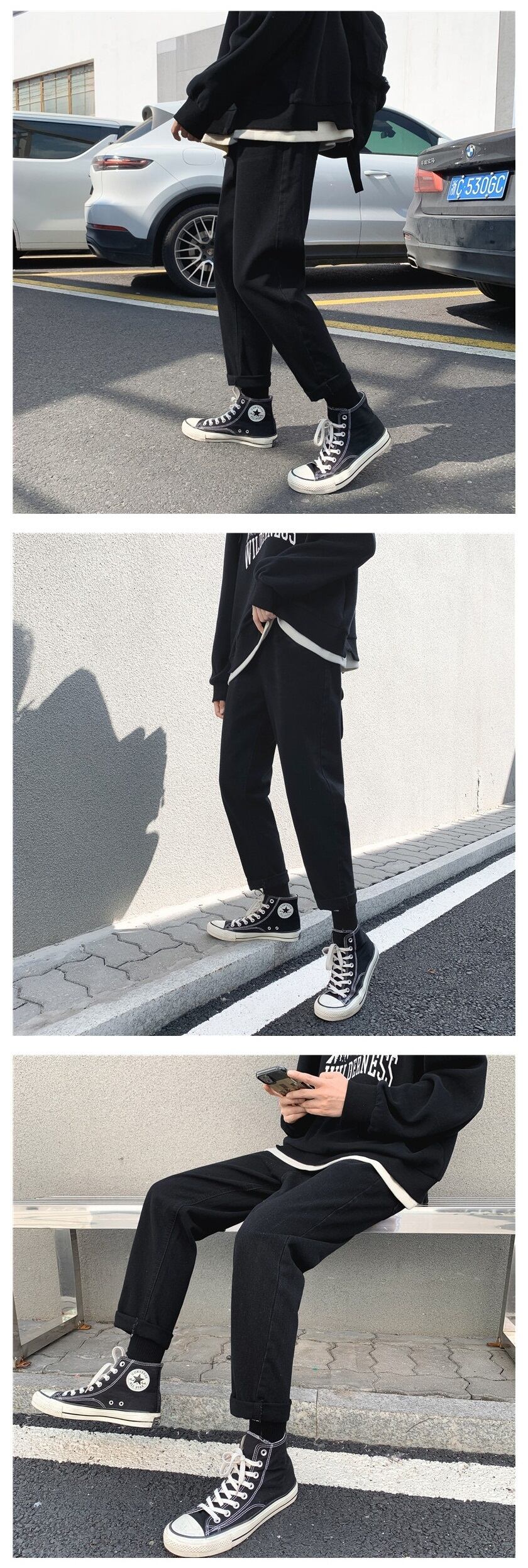ジーンズ スプリングオータムルーズブラックパンツ スタイルスリムカジュアル 春物 秋物 7/14 mi2019578031000