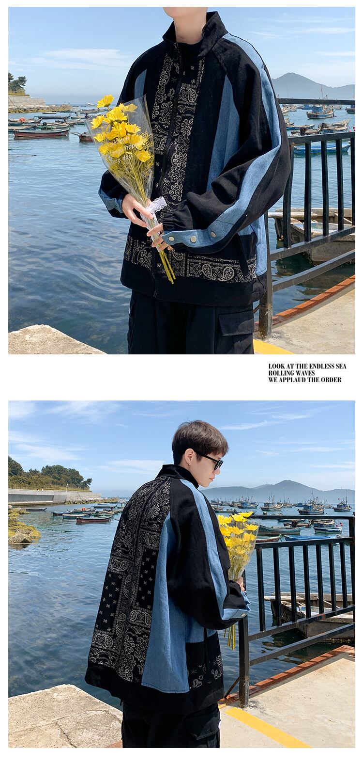 Flowerデザイン ジャケット スタイルルーズカジュアル ストリート フラワーデザイン ステッチ 7/14 mi2060380623193