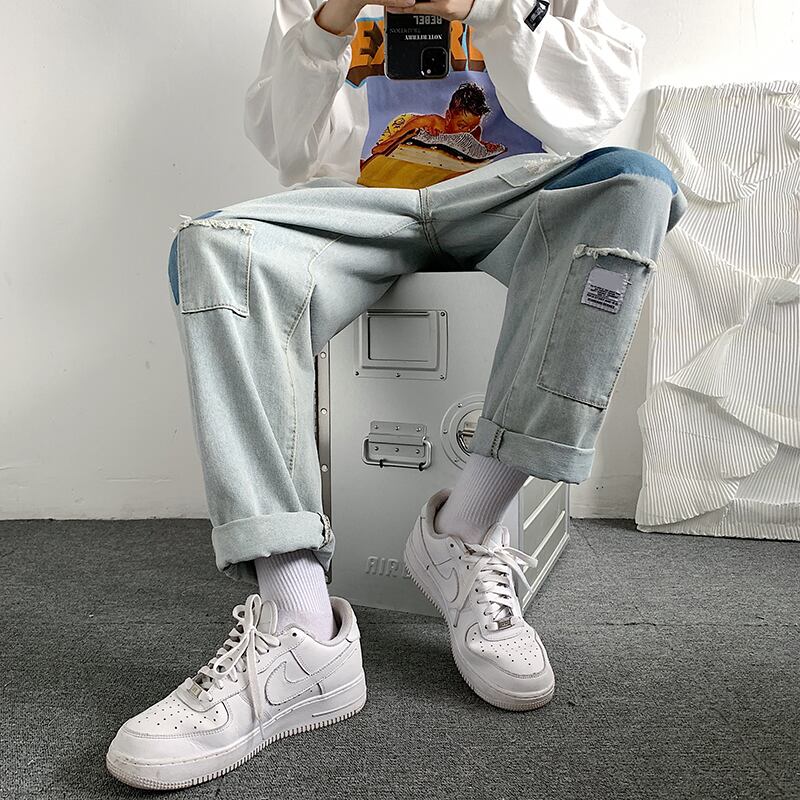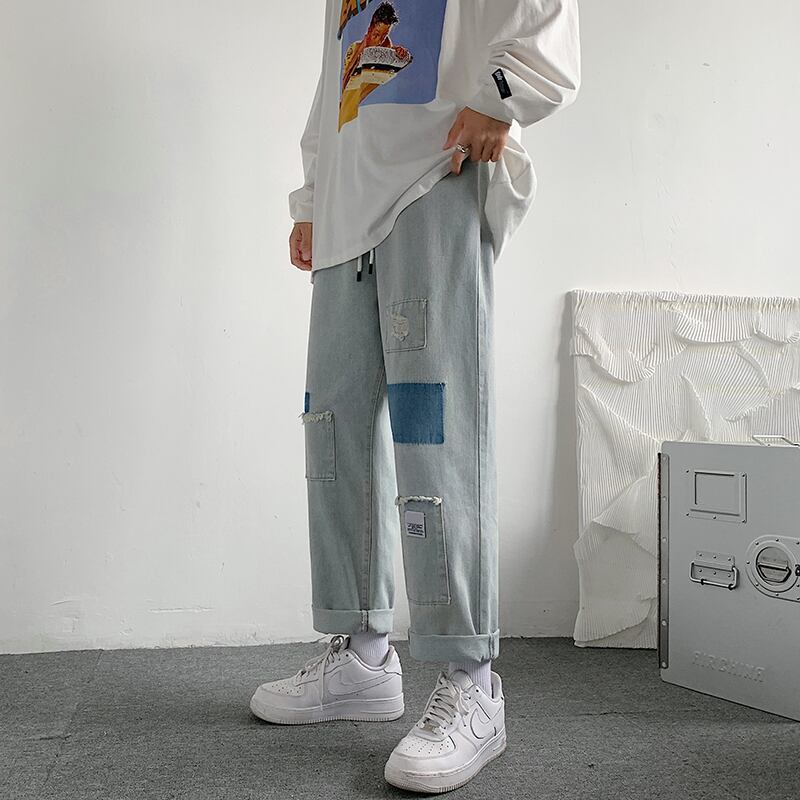 カラージーンズ スタンダードスタイルルーズカジュアルパンツ レッド レトロ ストリート かわいい 7/14 mi2029359243426