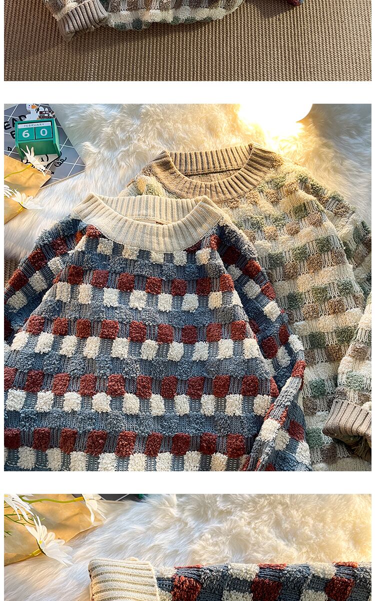 オータムウィンター格子柄ラウンドネックセーター スタイルルーズカラー ロング 秋物 冬物 Oネック 7/14 mi2022660770914