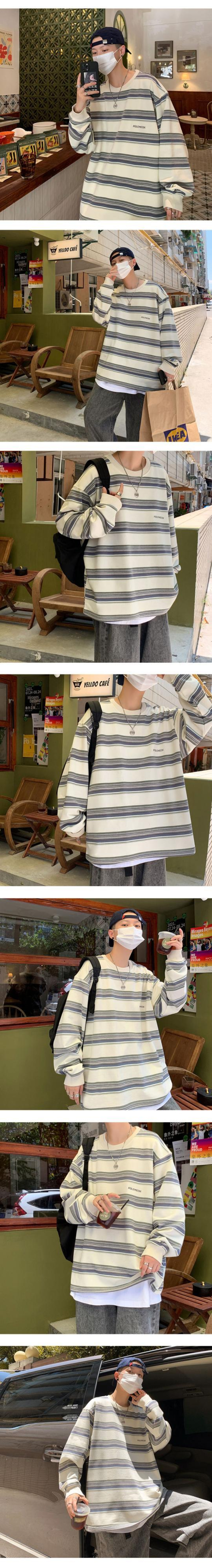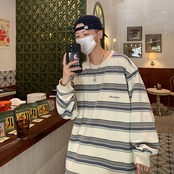 ストライプラウンドネックレディーススタンダードスタイルルーズジャケット カジュアル コットン レトロ かわいい Oネック 7/14 mi2098279152954