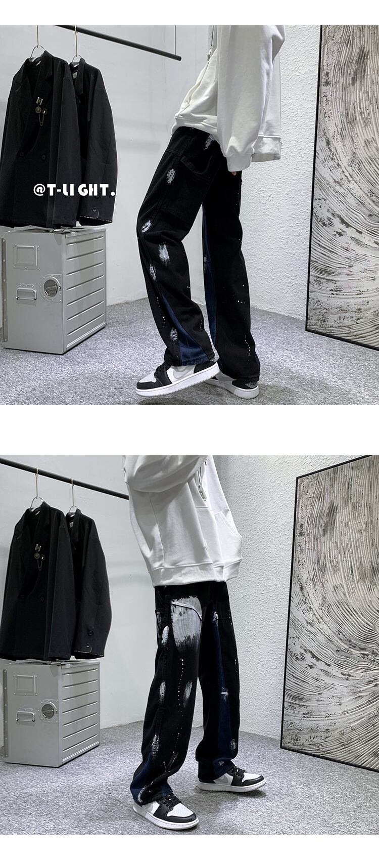ジーンズ スタンダードルーズブラックカジュアル レトロ ストリート 7/14 mi2053053348928