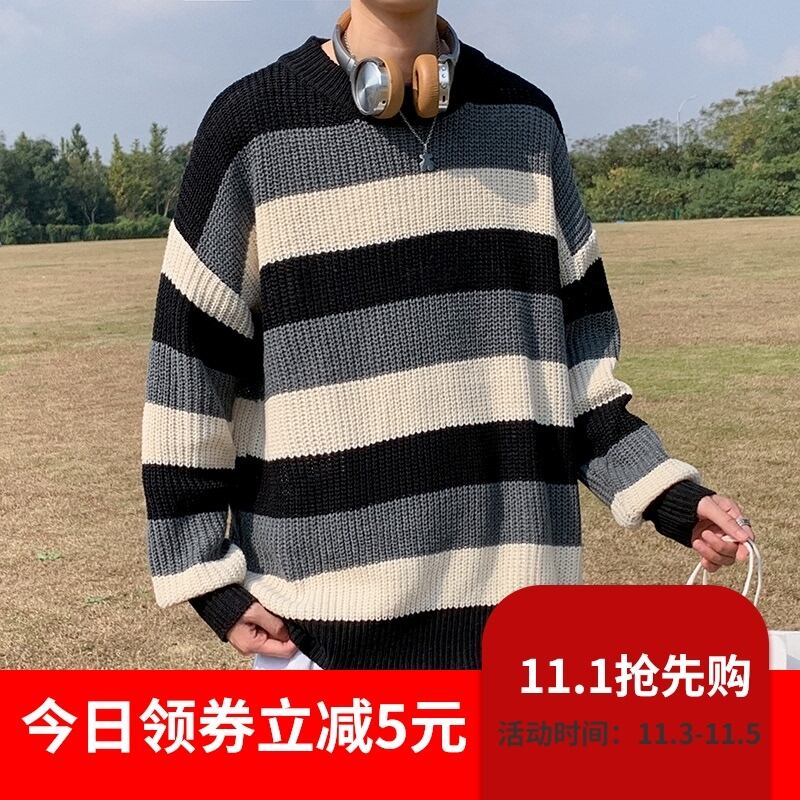オータムウィンタースタンダードカラーストライプセーター レディーススタイルルーズカジュアル レトロ 秋物 冬物 7/14 mi2071570843344