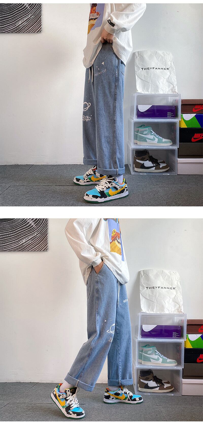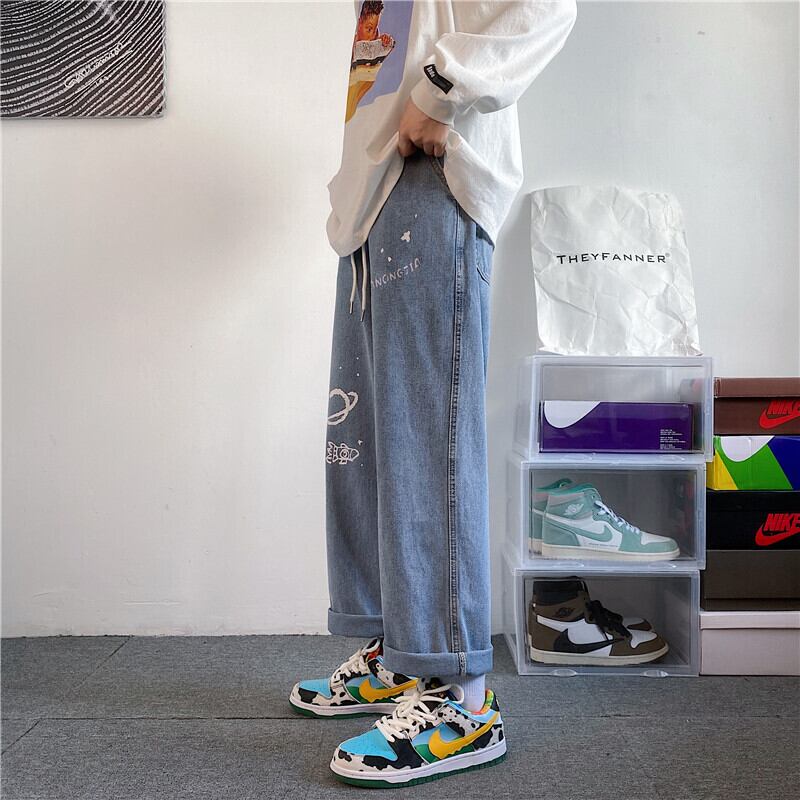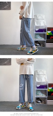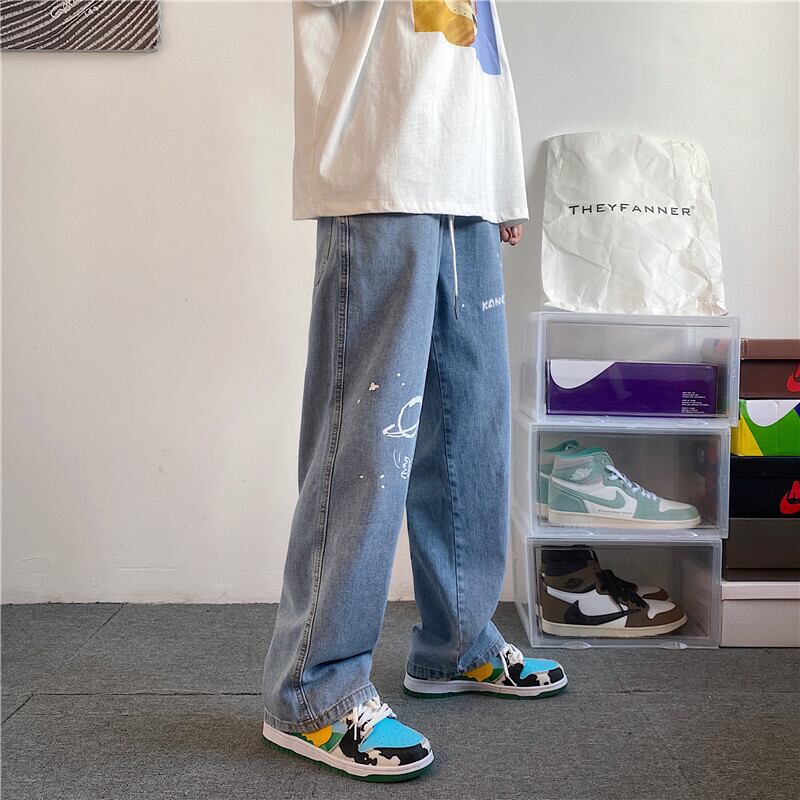 ストレッチウェストジーンズ ルーズオータムウィンターカジュアルロングパンツ ストリート エラスティック 伸縮 秋物 冬物 7/14 mi2024403871422