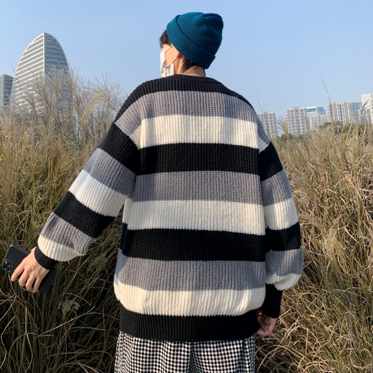 ラウンドネックセーター オータムウィンタースタイルストライプルーズ 秋物 冬物 Oネック 7/14 mi2033292646467