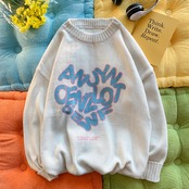 プリントセーター ラウンドネックオータムウィンタースタイルルーズカジュアルホワイト 秋物 冬物 Oネック 7/14 mi2083811560259