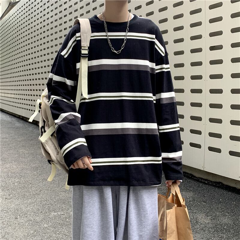 カラーストライプTシャツ ルーズカジュアルジャケット ロング 7/14 mi2051428338509