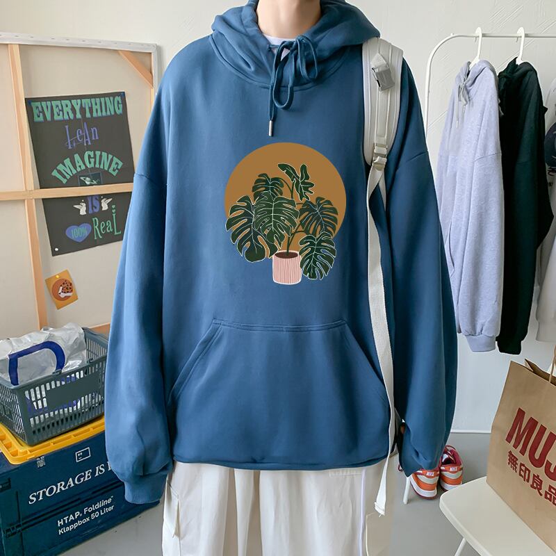 プリントフードスウェット ルーズカジュアルベルベットトップス 大きめサイズ 7/14 mi2040847020754