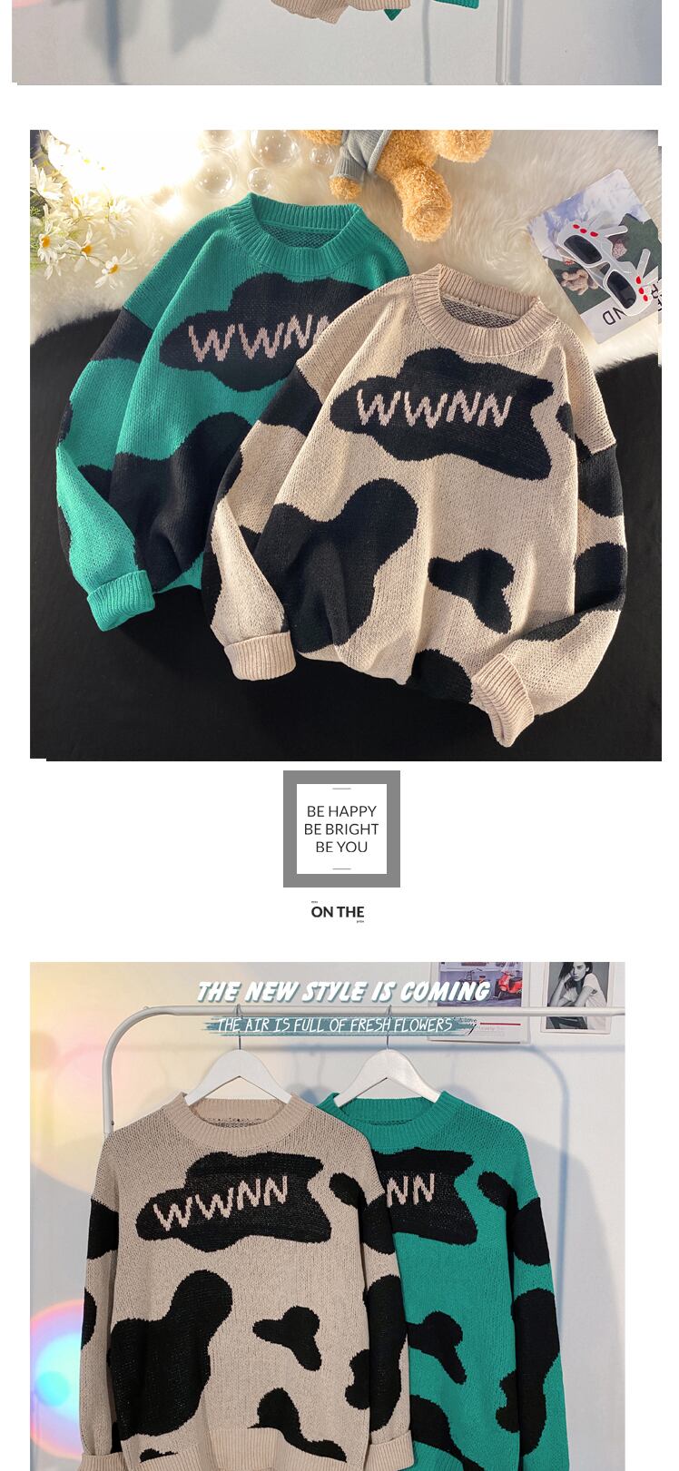 プリント柄セーター スタイルルーズカジュアルラウンドネック ストリート Oネック 7/14 mi2073872646681