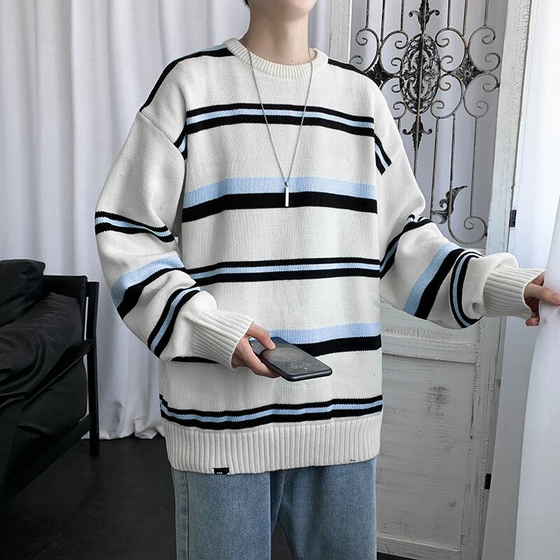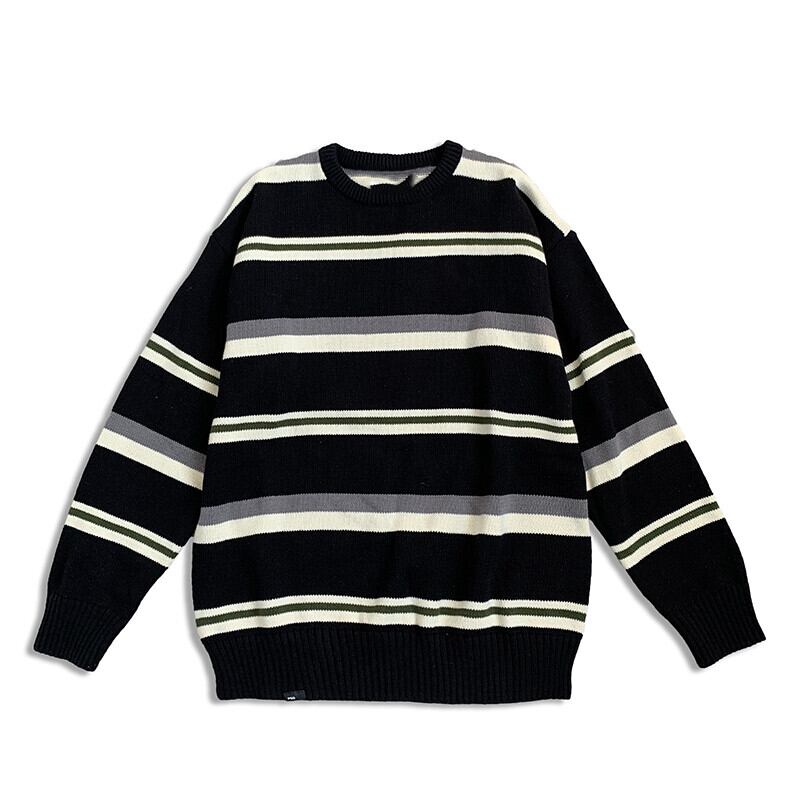 ストライプラウンドネックセーター カラールーズカジュアル ロング Oネック 7/14 mi2060005312527