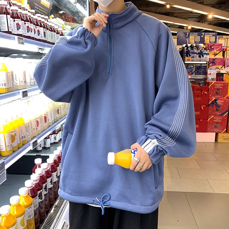 ジッパーカラースウェット スタイルルーズカジュアルベルベットプルオーバー コート トップス 7/14 mi2095309574528