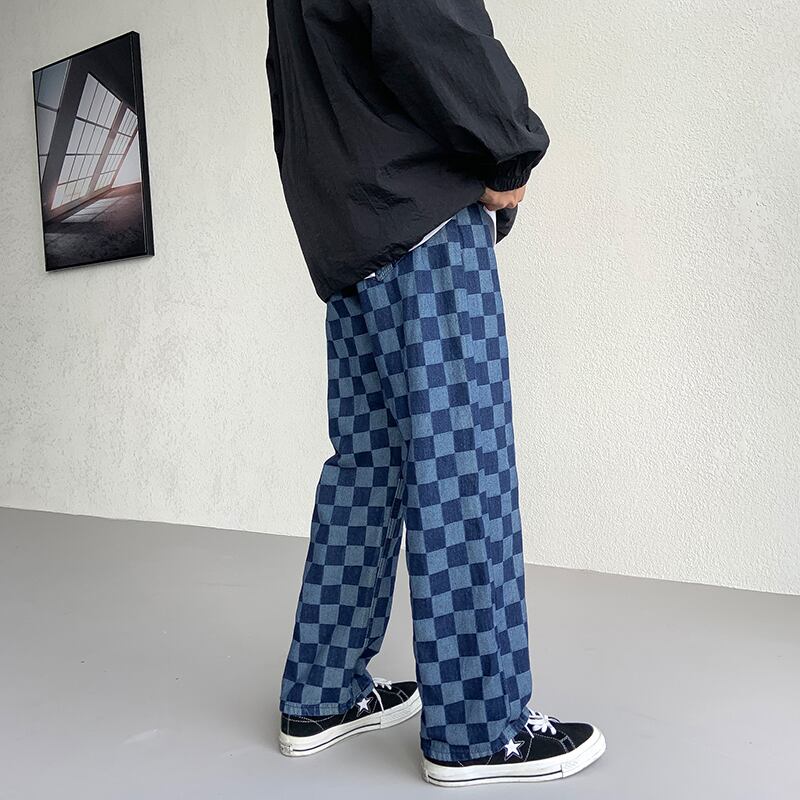 格子柄ジーンズ スタンダードルーズスタイルカジュアルパンツ レトロ 大きめサイズ かわいい 7/14 mi203886269586