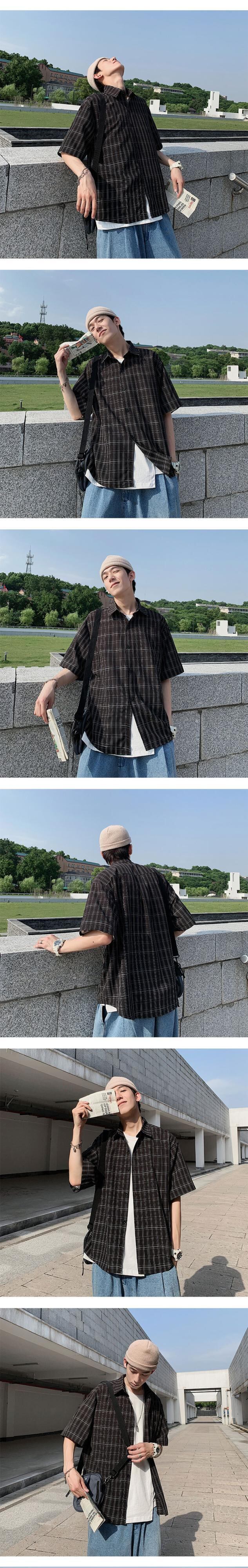 スリーブ格子柄シャツ サマーレッドスタイル 夏物 7/14 mi2034886147318