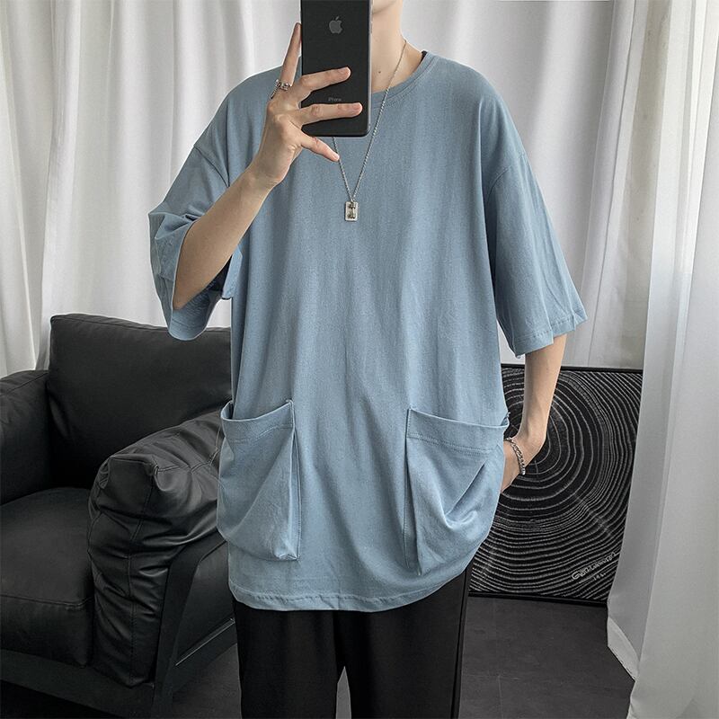 ポケットスタイルルーズソリッド カラーTシャツ ソリッドカラー 7/14 mi2072825596065