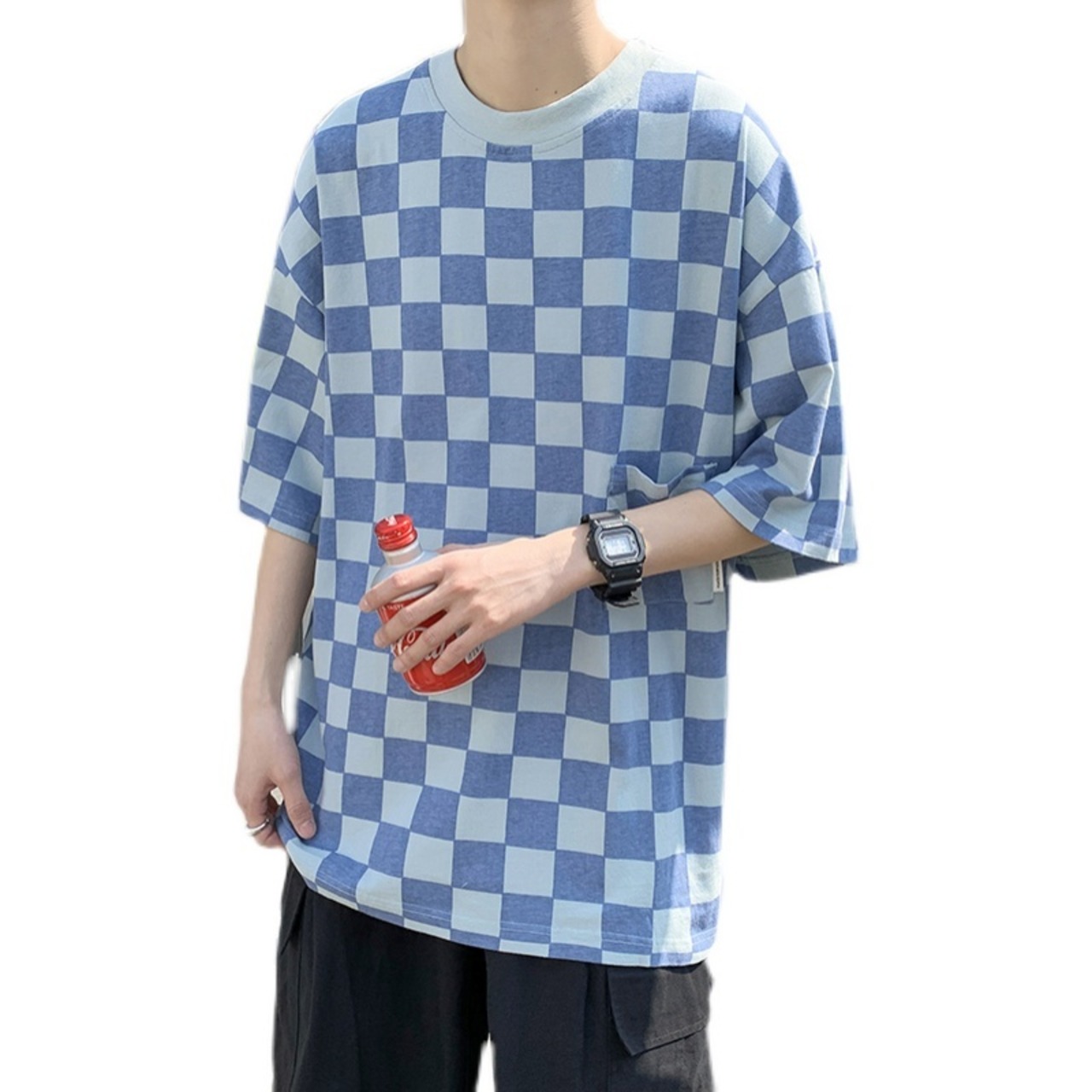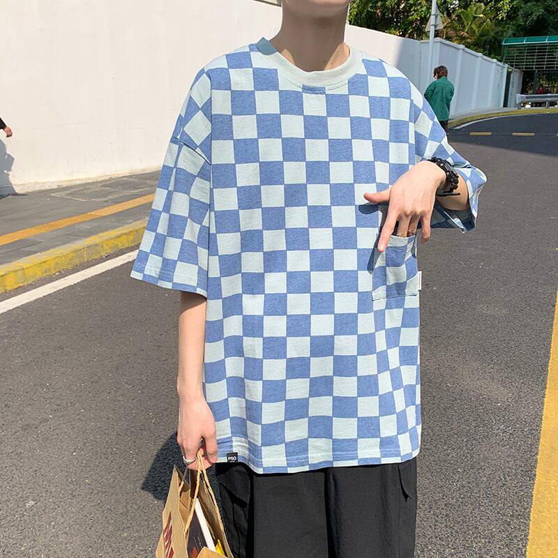 サマー格子柄スリーブシャツ スタイルルーズカジュアルTシャツ 夏物 7/14 mi207409628291