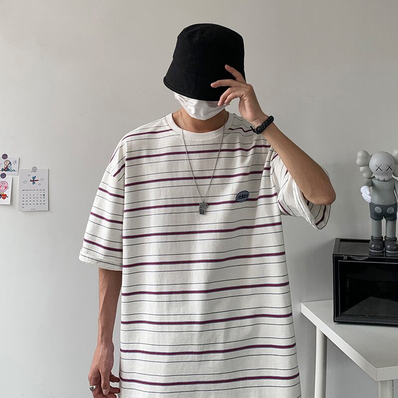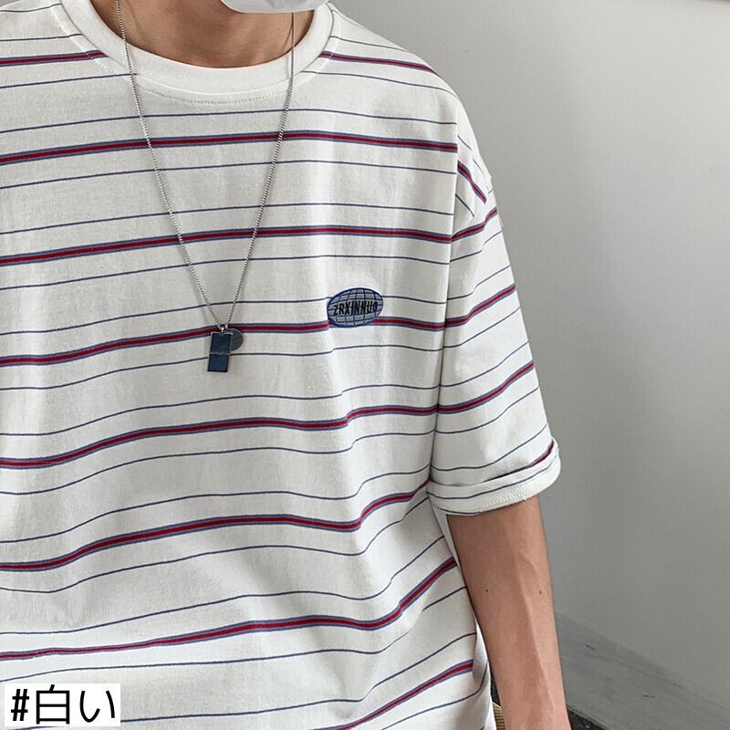 ストライプTシャツ サマーカラールーズスタイル かわいい 夏物 2/13 mi2085006726431