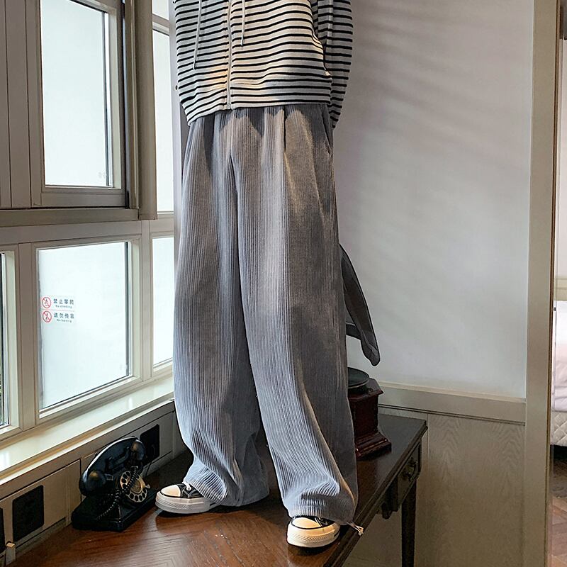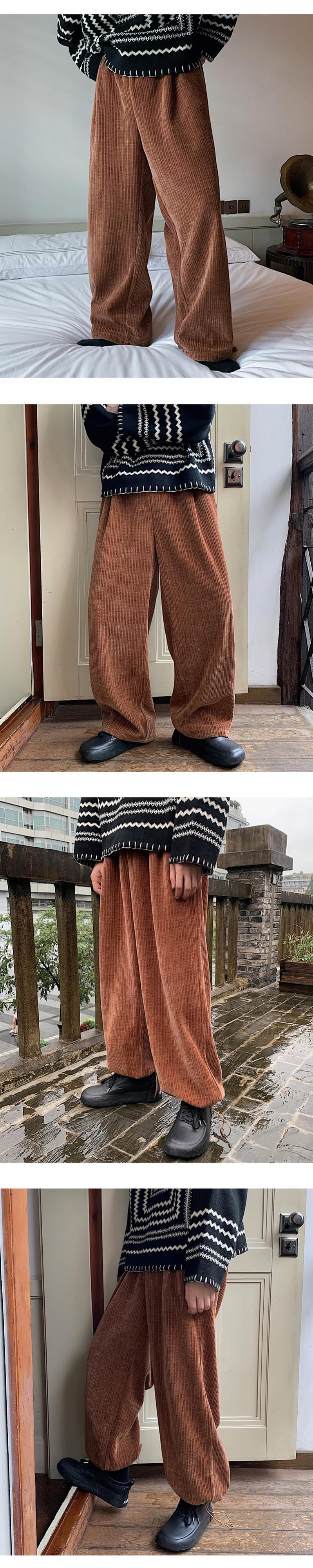 オータムウィンターコーデュロイパンツ スタンダードワイドレッグ レッド レトロ 秋物 冬物 ワイドパンツ 2/13 mi2054502185275