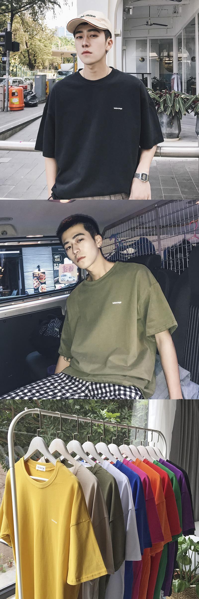 サマーソリッド カラールーズTシャツ シャツ ラウンドネック 夏物 Oネック ソリッドカラー 2/13 mi2061930256100