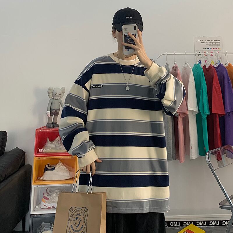 スプリングスタイルストライプラウンドネックセーター ルーズプルオーバー トップス かわいい 春物 Oネック 2/13 mi2085078935212
