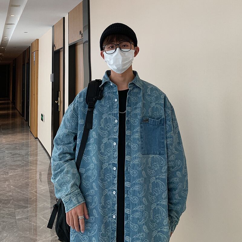 オータムポケットカラーシャツ ルーズFlowerデザイン プリント柄ジャケット ロング 秋物 フラワーデザイン 2/13 mi2051360784777