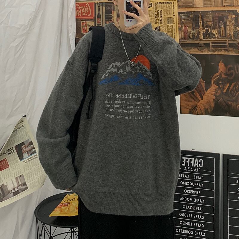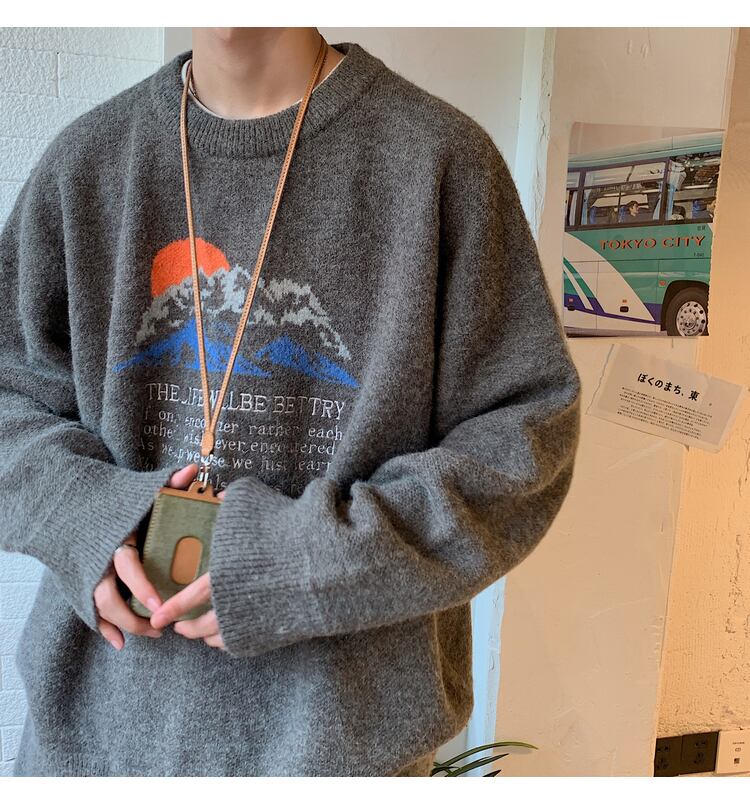 オータムウィンタージャカードラウンドネックセーター レディースルーズ 秋物 冬物 Oネック 2/13 mi2028033679242