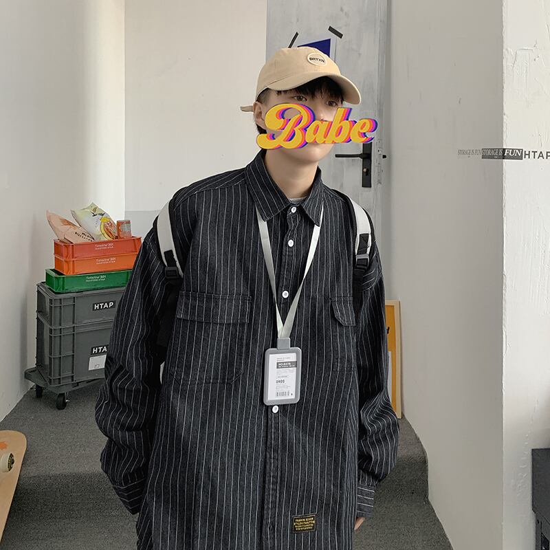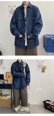 スプリングオータムストライプシャツ カジュアルジャケット ロング かわいい 春物 秋物 2/13 mi2032349471558