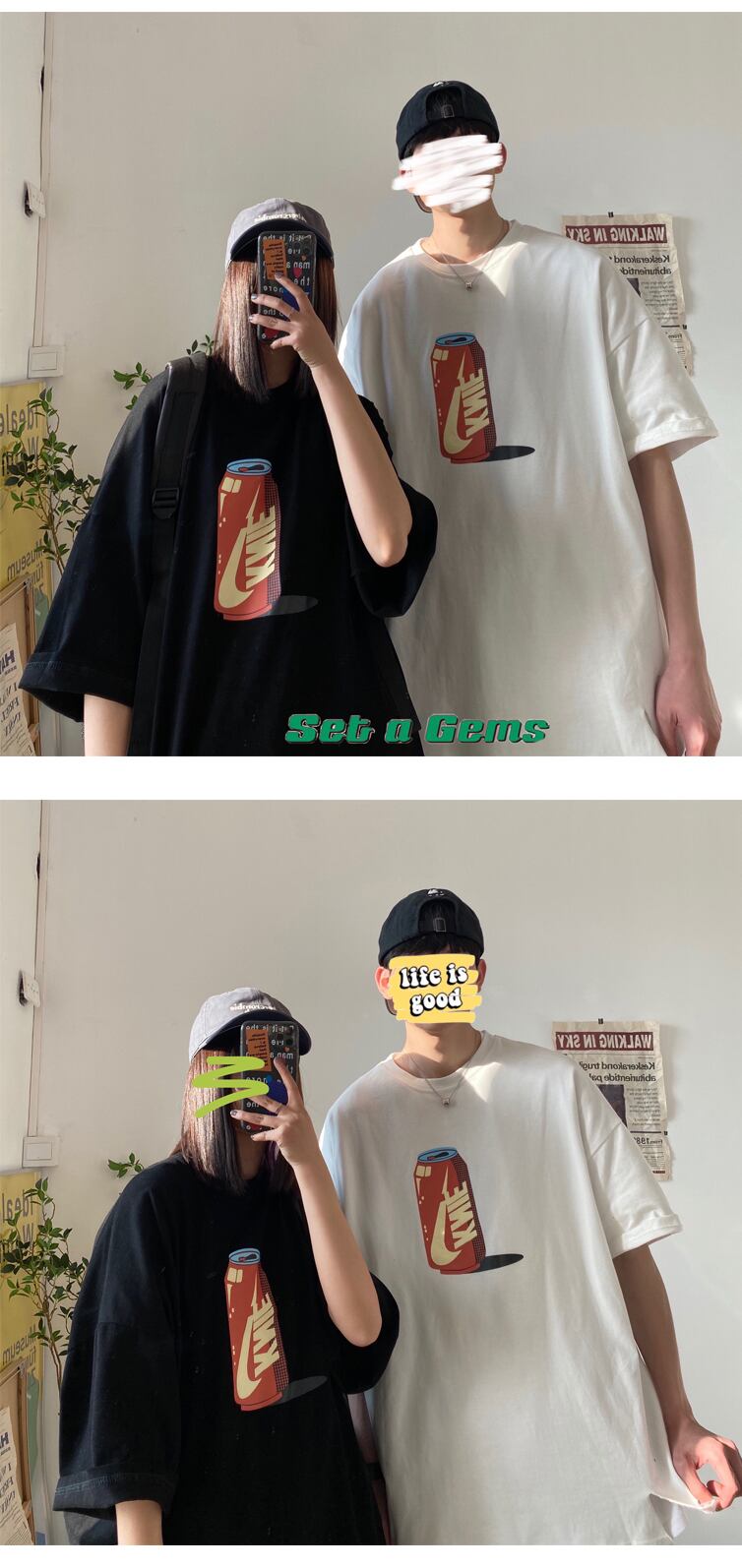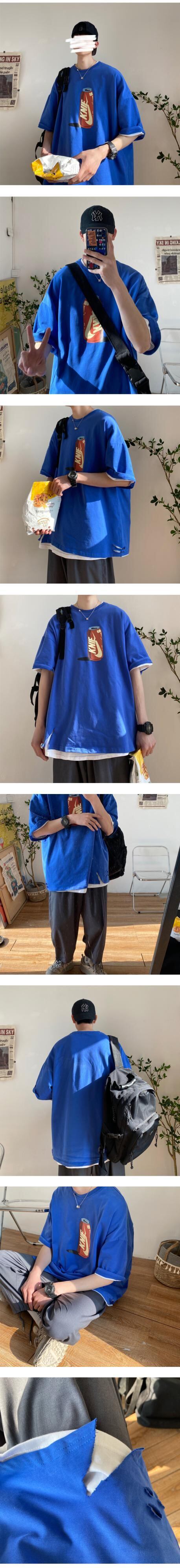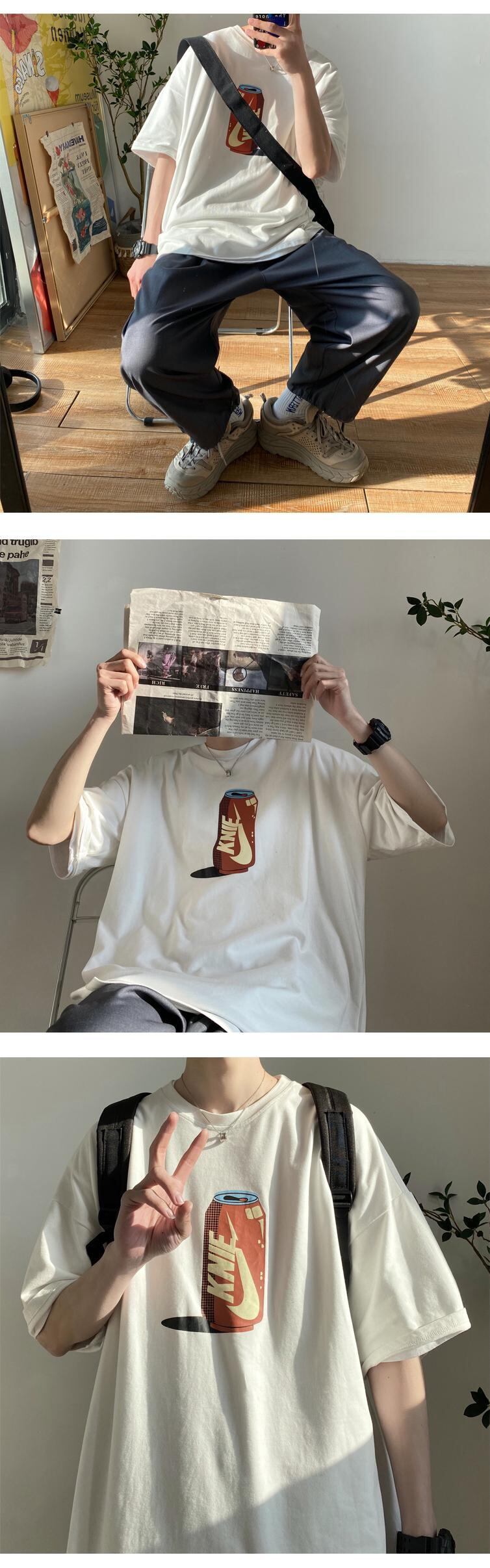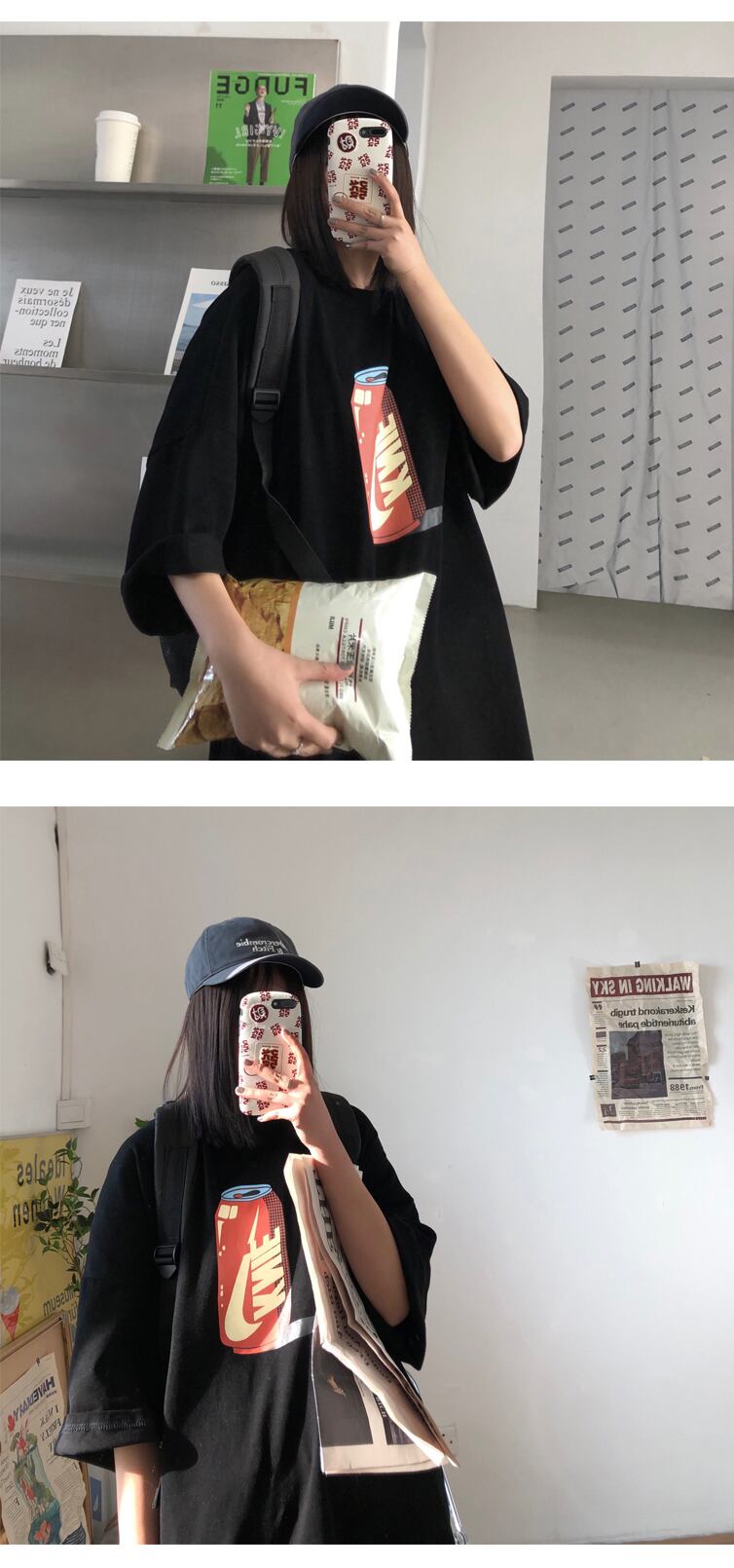 サマーレッドプリントスリーブTシャツ ルーズトップス 夏物 2/13 mi2027205758542