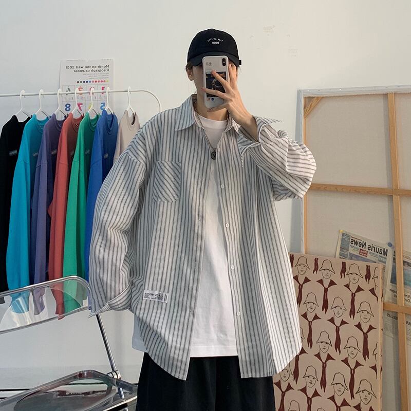 オータムストライプルーズシャツ スタイルカジュアル ロング 秋物 2/13 mi2069616111518