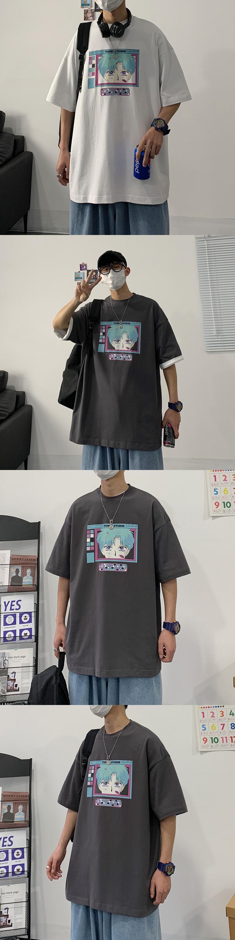 サマープリントTシャツ ルーズ 夏物 2/13 mi2011565953110